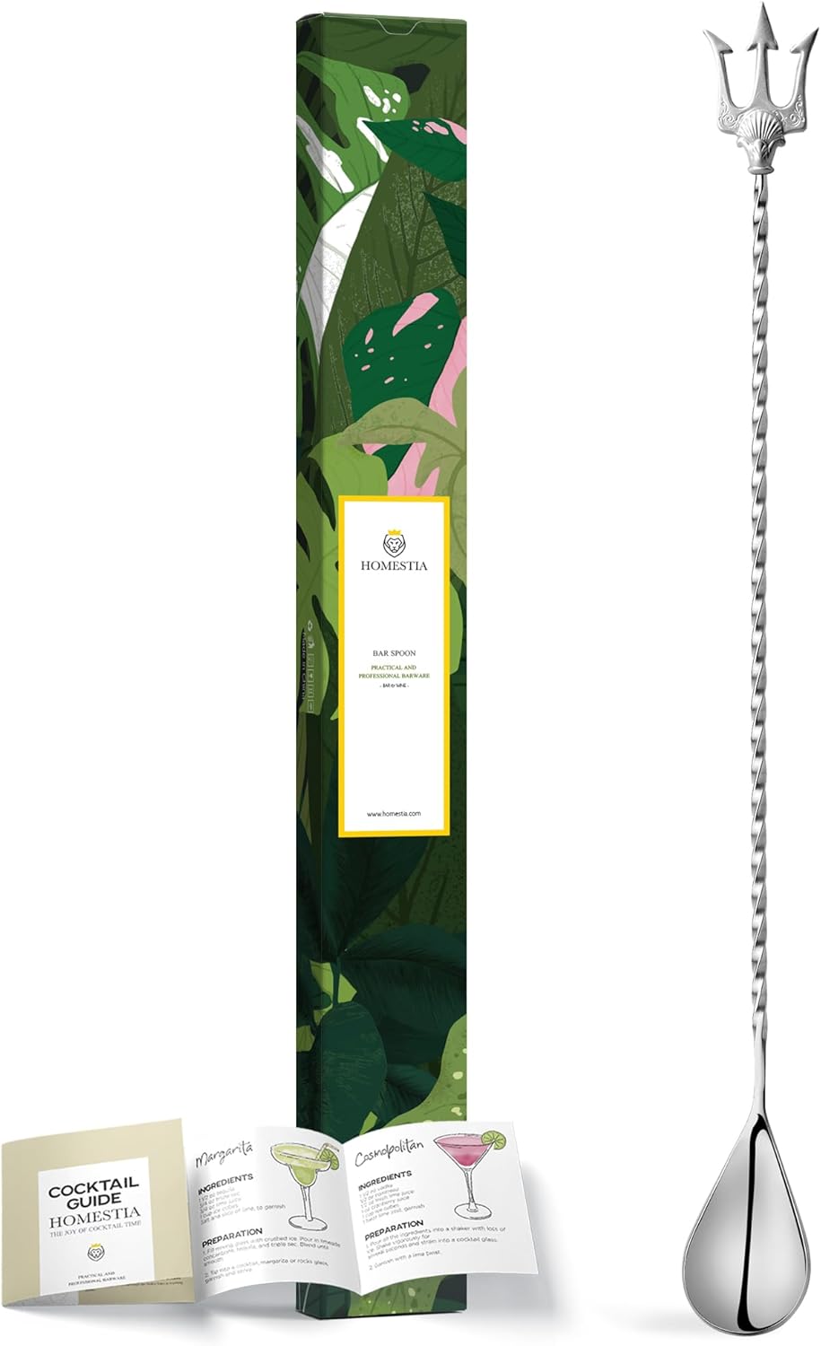 Homestia Bar Spoon Cocktail Mixing Spoon - 12'' Long Handle Stainless Steel Cocktail Stirrers with Trident Fork for Professional Bartender and Home Use, Stirrer Stir Bartender Tool