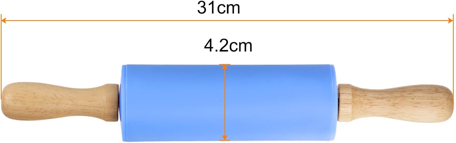 HARFINGTON Silicone Rolling Pins for Baking 12 Inch Wooden Handle Non Stick Rolling Pin Small Roller Playdough Rolling Pins for Dough Pizza Pastry Fondant Kitchen, Blue