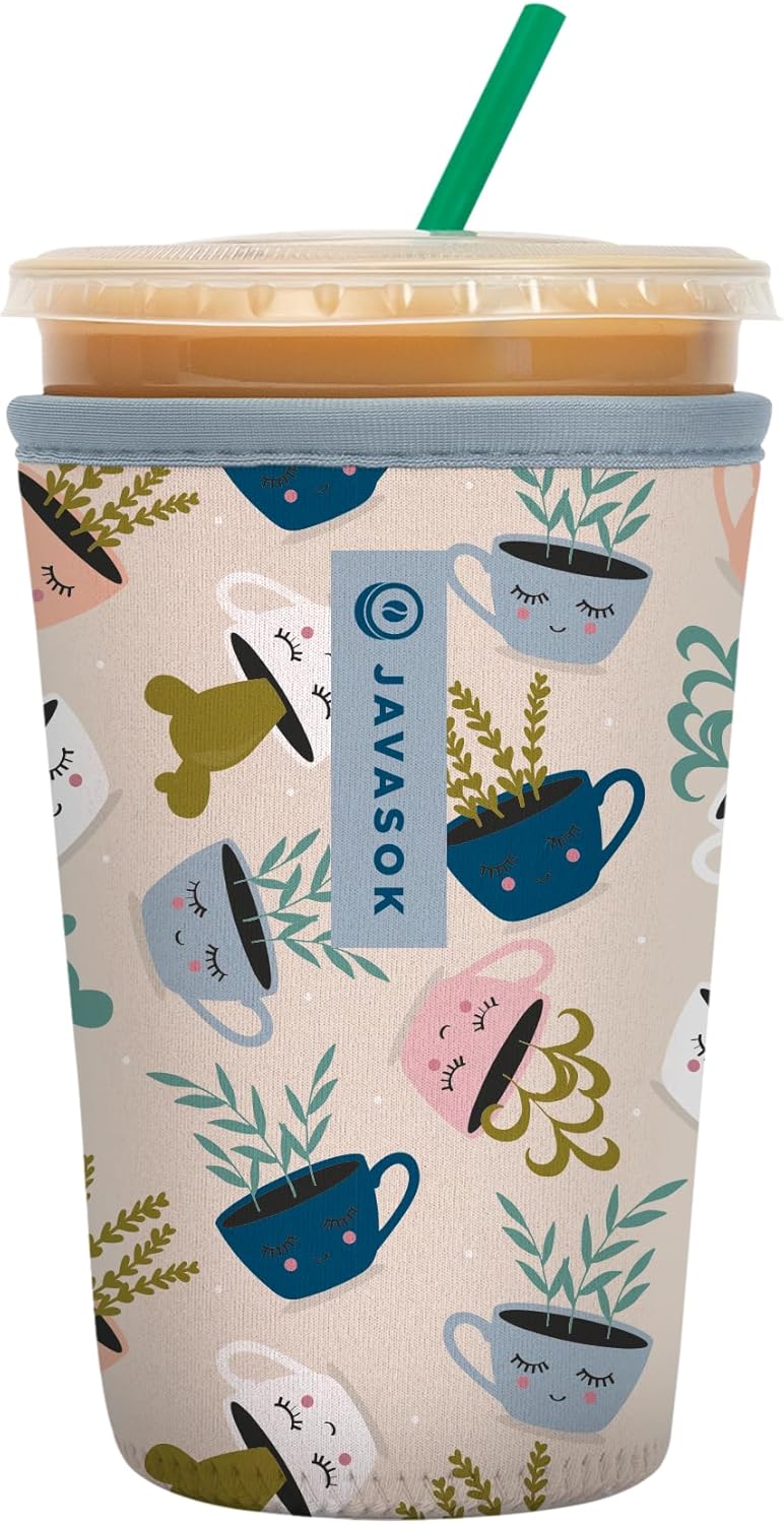 Sok It JavaSok Iced Coffee & Cold Soda Insulated Neoprene Cup Sleeve (Botanical Teacups, Medium: 22-28oz)