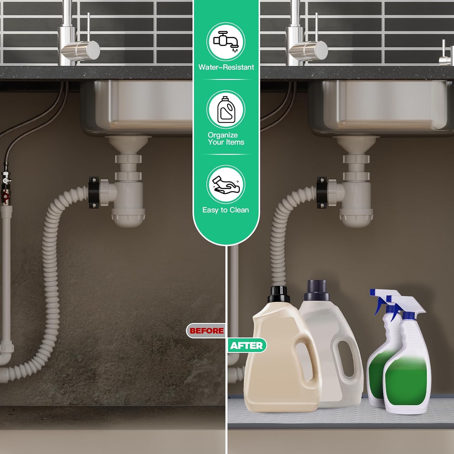 - Multiple Uses: Suitable for various areas including bathroom cabinets, under washroom counters, garden mats, pet feeding areas, tool organization, crafting, coffee machine placement, and shoe cleaning; helps prevent messes and spills