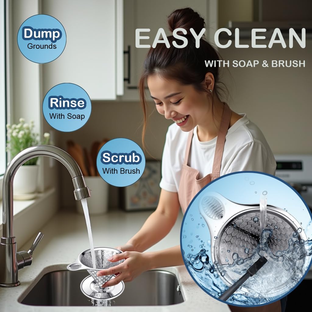 - 【Thoughtful and Functional】This Pour Over Coffee Dripper features an extra-large handle with anti-slip ridges, providing a comfortable and secure grip. The ultra fine inner mesh ensure a smooth and delightful pour over coffee experience. The detachable base offers versatile use options: use the cone filter separately on a glass pour over coffee maker or attach it to the base for use with cups, mugs, and pots. With the included cleaning brush, it is easy to clean by soaking in water after use, preventing coffee oils from clogging the filter.
