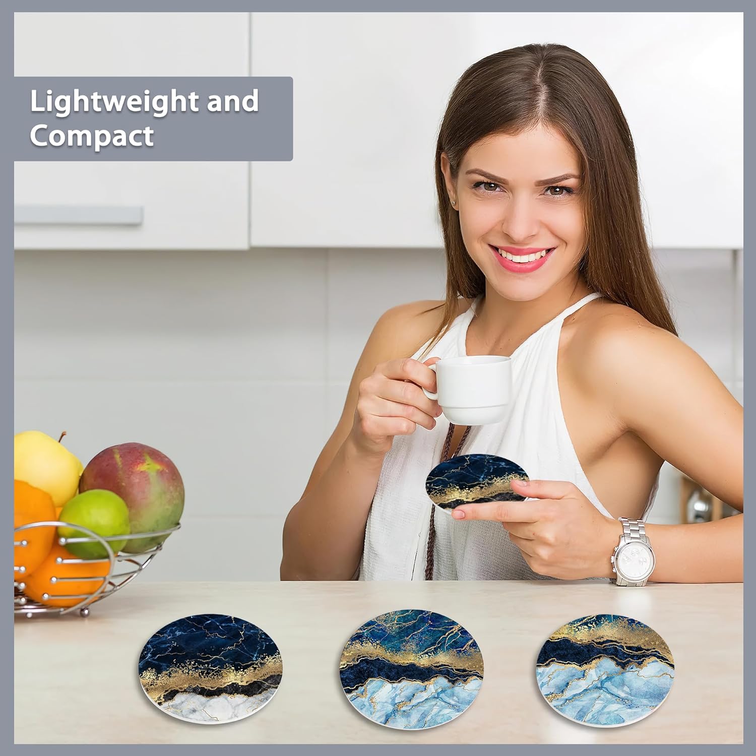 6 Pcs Coasters for Drinks with Holder,Blue Gold Marble Absorbent Coaster with Cork Backing,Great Gift for Housewarming,Room Decor,Bar,Holiday Party