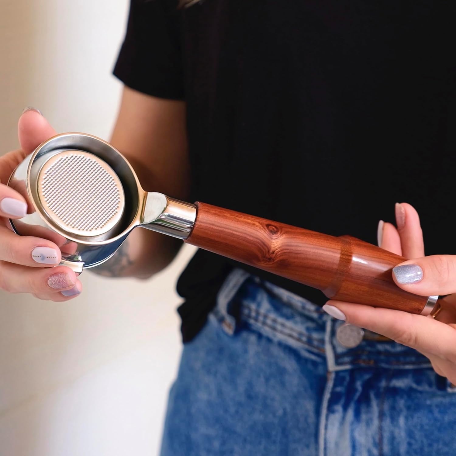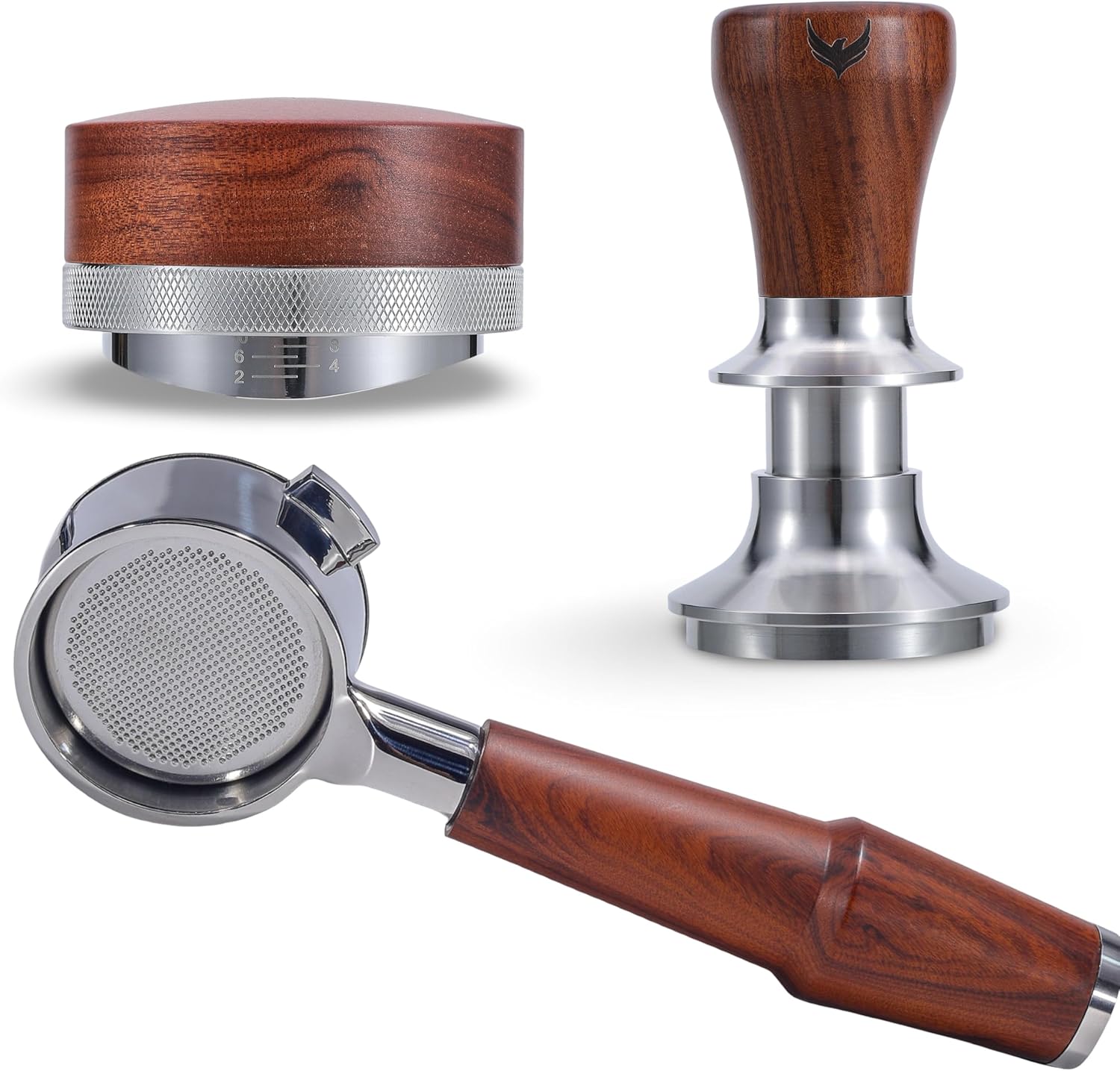 - This barista kit includes a 58mm Bottomless Portafilter with a Rosewood Handle, 58.5mm Calibrated Coffee Tamper, and 58.5mm Espresso Distribution Tool. Designed for Gaggia machines 58mm portafilters, this set provides everything you need for professional espresso preparation