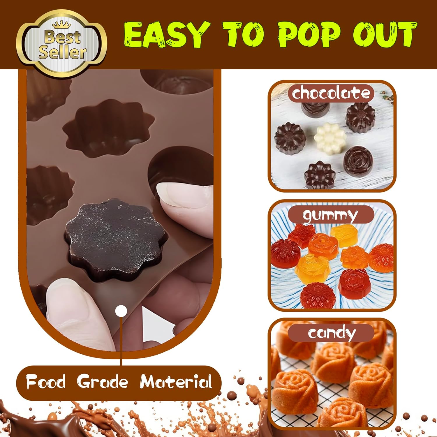 Rose Flower Shaped Silicone Chocolate Molds,BPA Free & Non-stick Silicone Tray for Hard Candy Caramels Jello Gummy Truffles Ice Cubes Soap - 4 Pack
