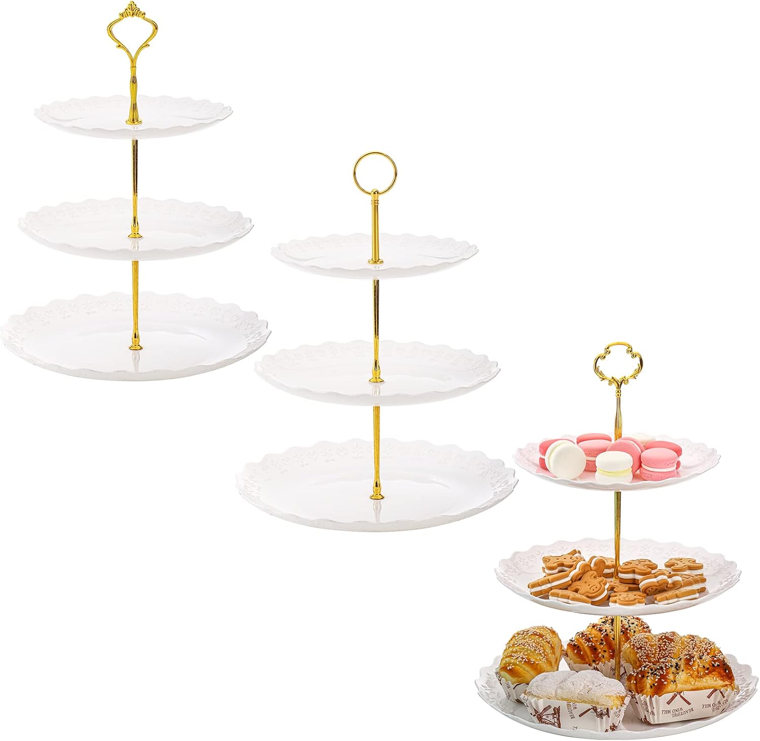 - Unique Patterns Embossed - Tiered serving stand designed with sleek wavy edges and embossed with heart and flower patterns, full of grace and romantic feeling. Simple and elegant white color to fit into any occasions or decorations.