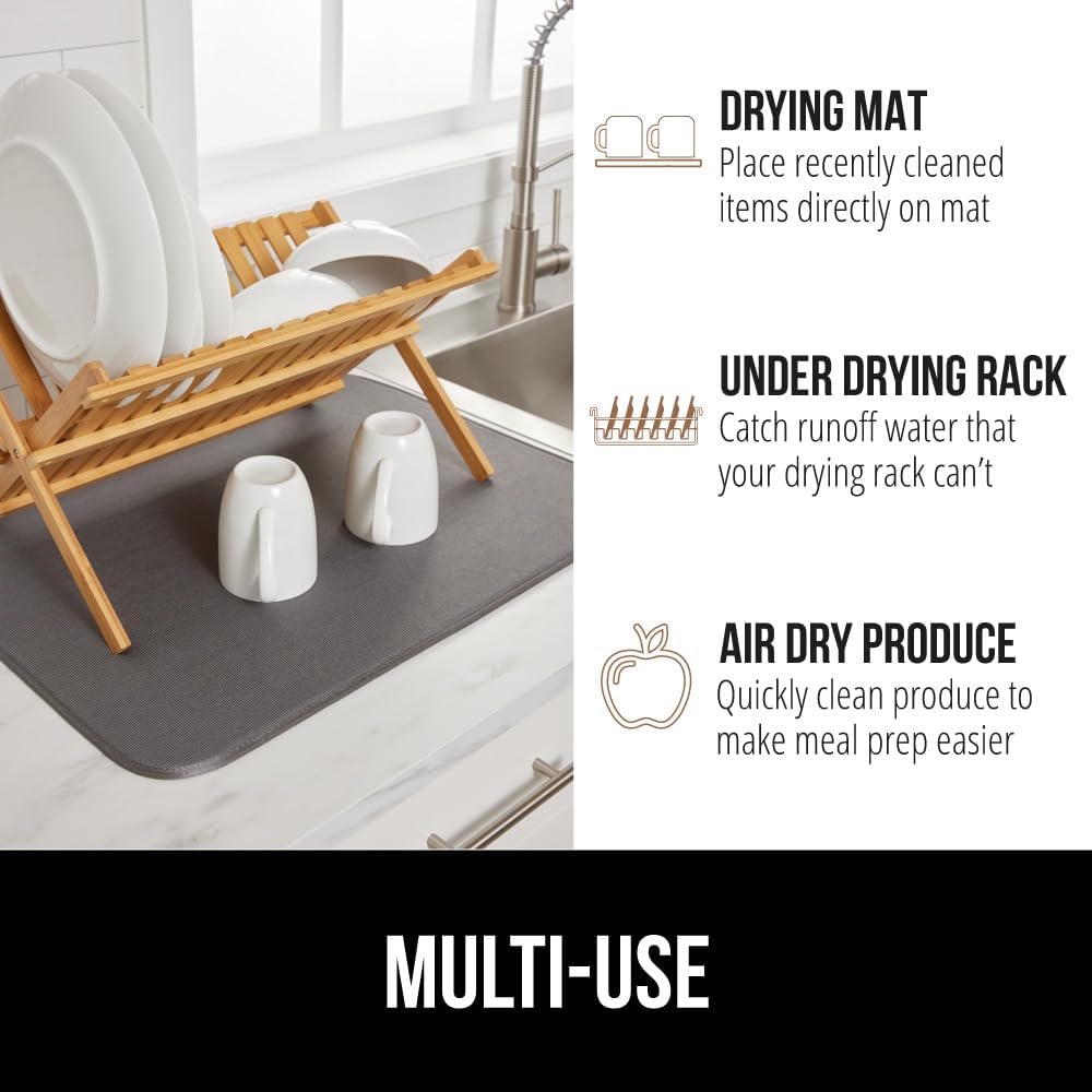 GORILLA GRIP Ultra Water Absorbent Microfiber Dish Drying Mat, 18x32, Quick Dry Thick Mesh, Slip Resistant Pad for Sink Dishes or Under Rack, Kitchen Counter Accessories, Machine Wash Mats, Gray