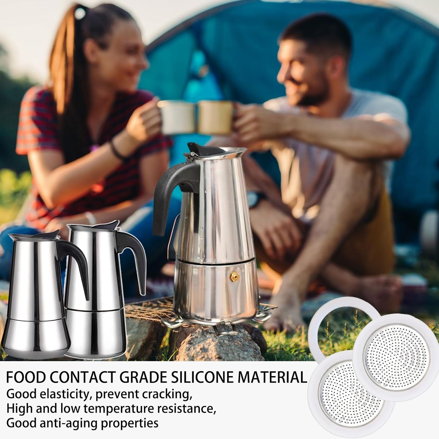 2Pcs Filter with 3Pcs Silicone Gasket Seals for 2 Cup Stovetop Espresso Coffee Maker Replacement Parts for Big Tummy and Straight Stainless Steel Moka Pot
