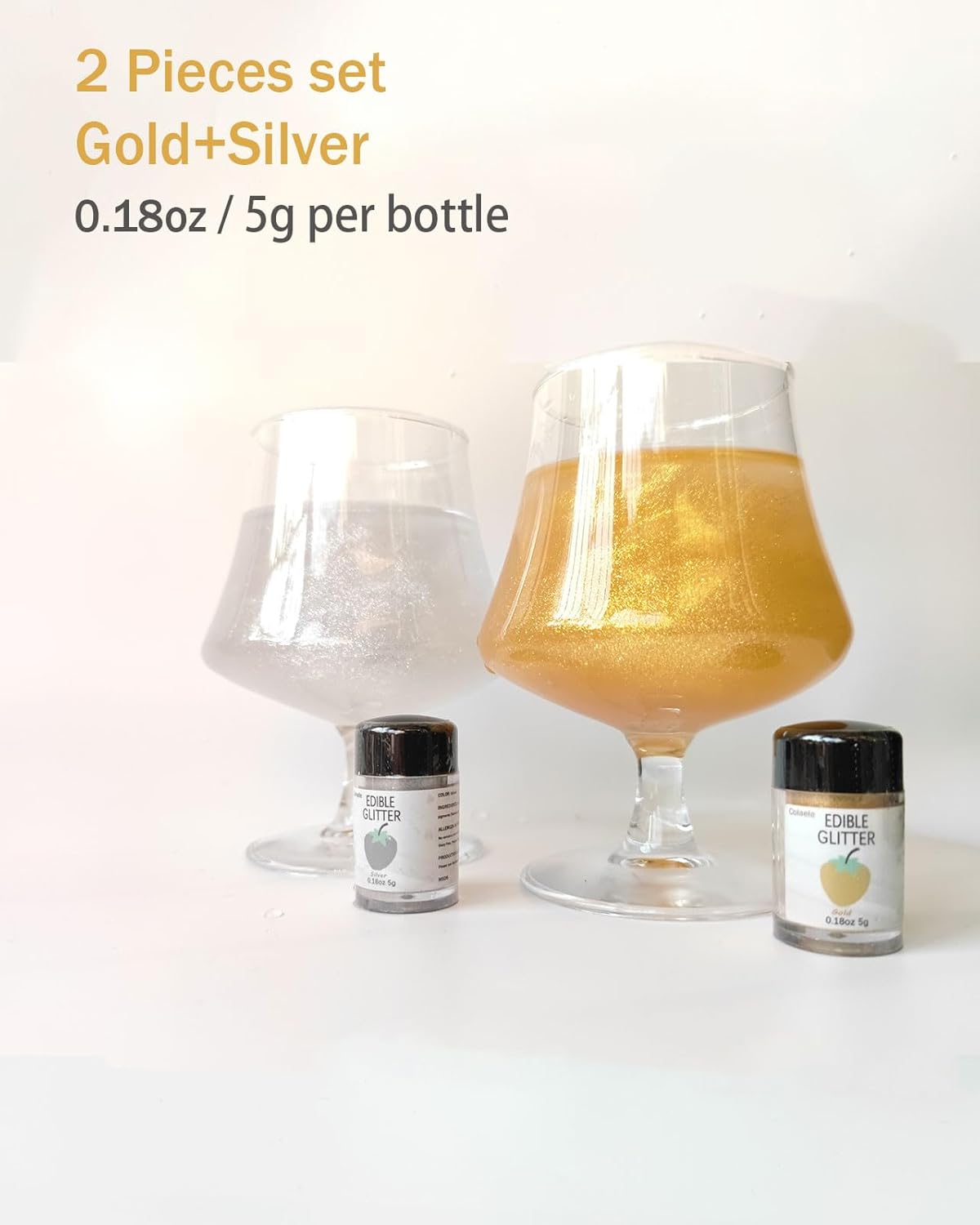 - 2 Edible Glitter Dust Colors Are Available - Includes: Gold, Silver, 5 Grams Each Jar. It is an ideal choice set for holidays, Halloween, Christmas, Wedding, and more special day to decor.