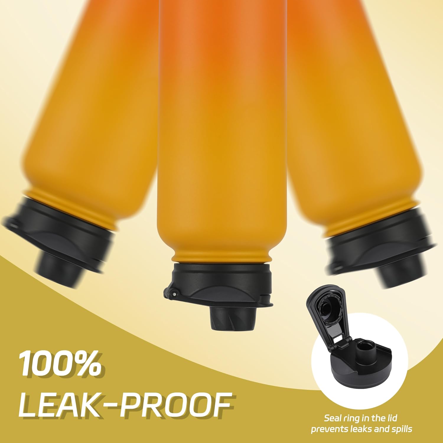 HASLE OUTFITTERS 32 oz Insulated Water Bottle Stainless Steel Double Walled Vacuum Sports Water Bottle with 2 Lids (Straw and Spout Lid) for Gym Camping Hiking(Yellow Orange Gradient,1)