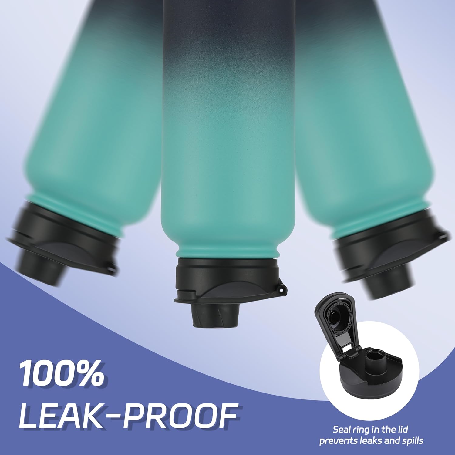 - 【SPOUT LID & STRAW LID】Available in 2 leak-proof covers that can be switched at any time: 1 flip-up straw lid, 1 easy-twist spout lid. All caps are 100% leak-proof, so you can drink on the go without spilling, and don't worry get wet and putting it in your bag. Its wide-mouth opening makes your ice or fruits filling and cleaning easy and fast.