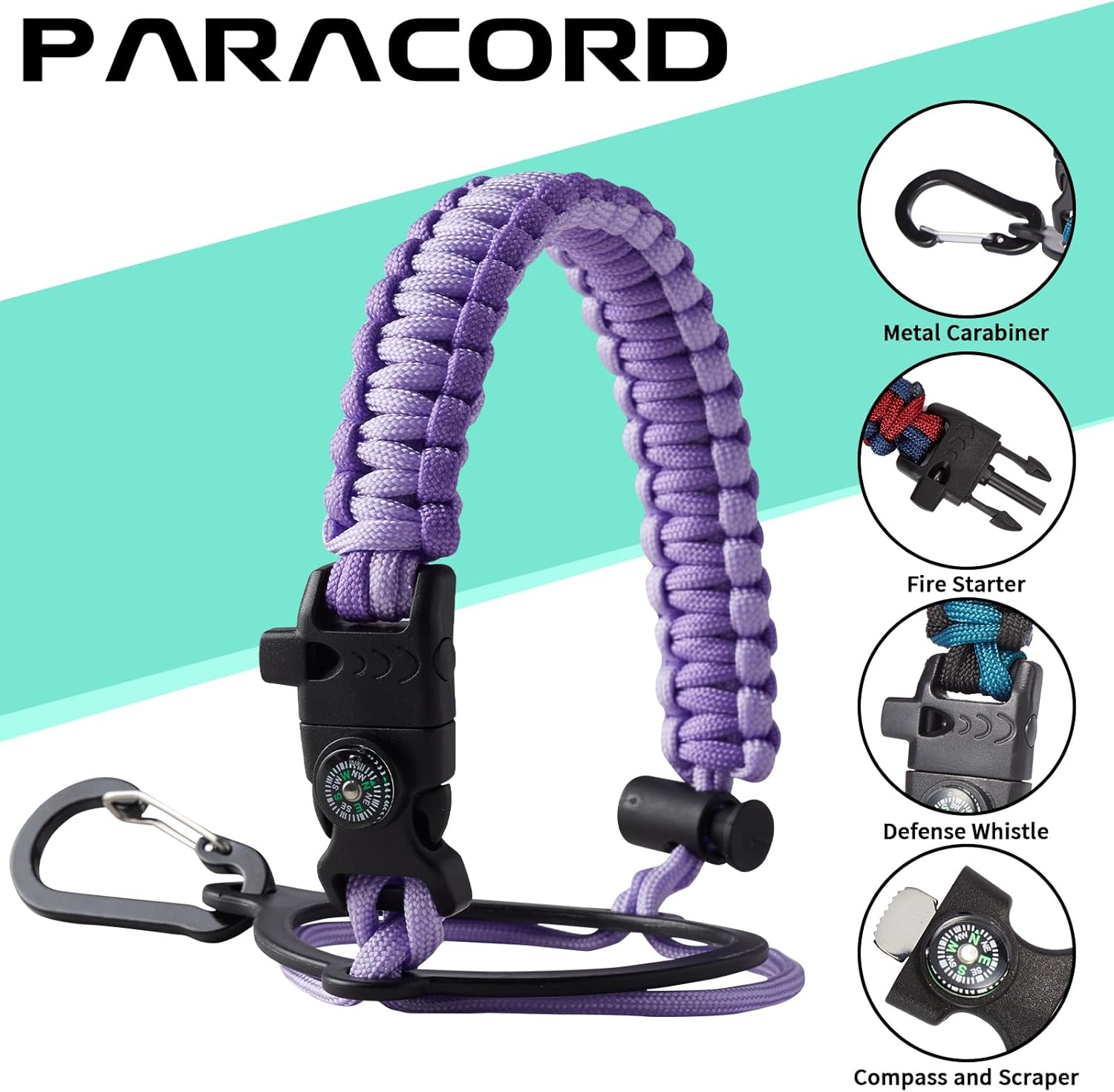 - UNIQUE PARACORD—Perfect Accessories: bright color paracord matches the flask water bottle to give you a youthful vibe while adding a personal style. It comes with a compass, safety loop, metal carabiner, flint, igniter, and whistle to become your survival tool for your wild adventures