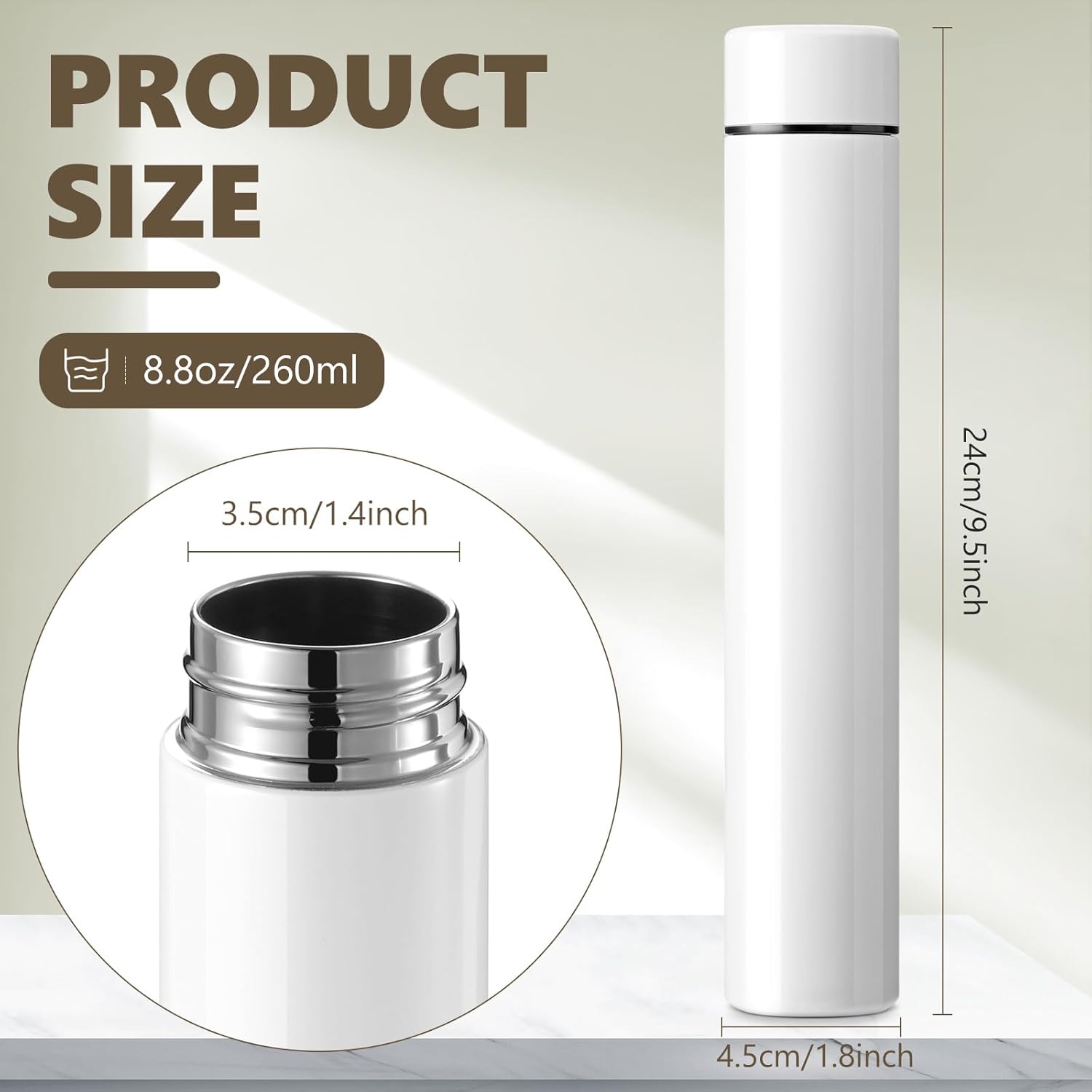 - Leak-proof design: the small vacuum insulated bottle is equipped with a spiral anti leak device; When tilted or shaken, the bottle will not leak easily, and you can carry it with confidence without worrying about messing up your bag; Its slim and unique appearance will draw everybody's attention; No matter where you take it, it will put you in the spotlight