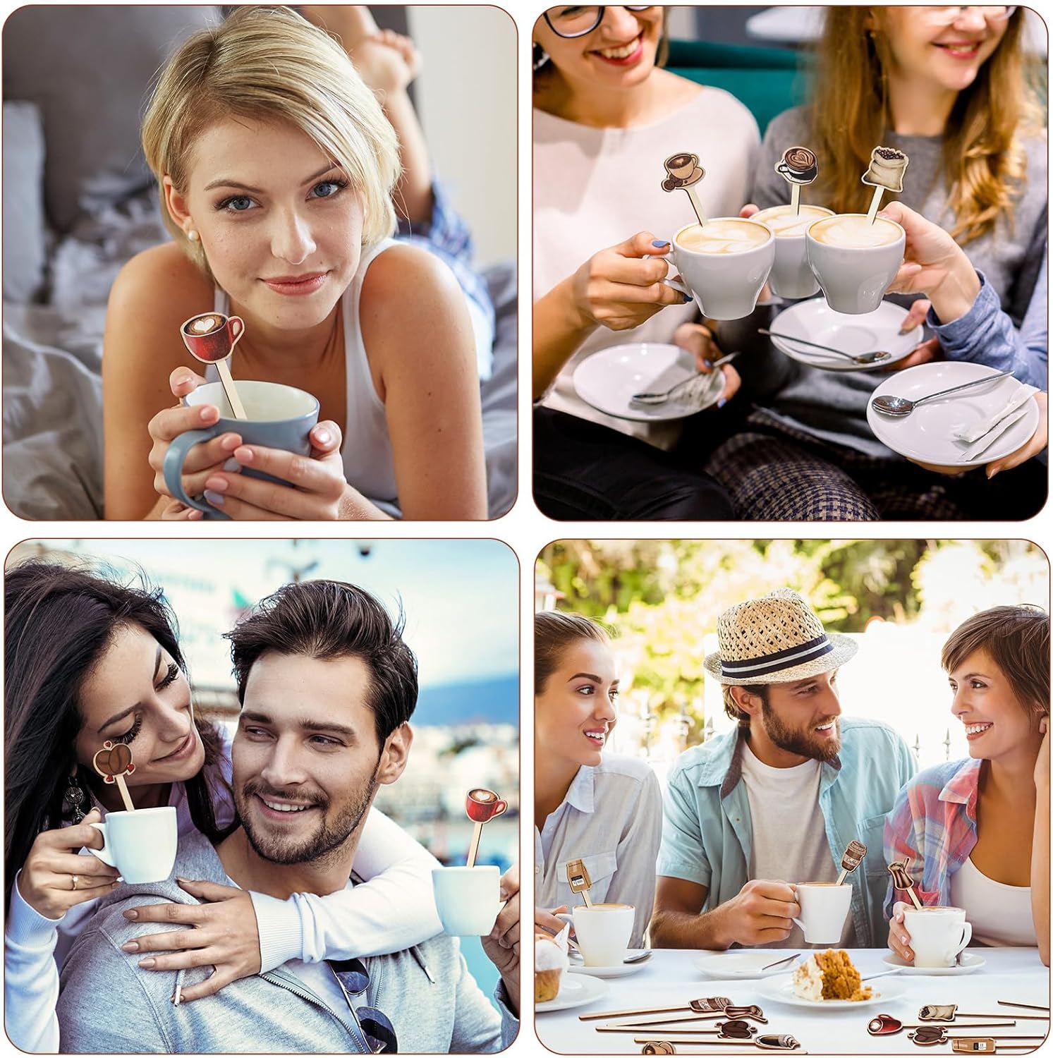 - Creative Pattern Design: these coffee stir sticks have different coffee patterns printed on the round handles, the beautiful patterns can add a different kind of fun to your party and make your guests spend a memorable and enjoyable holiday