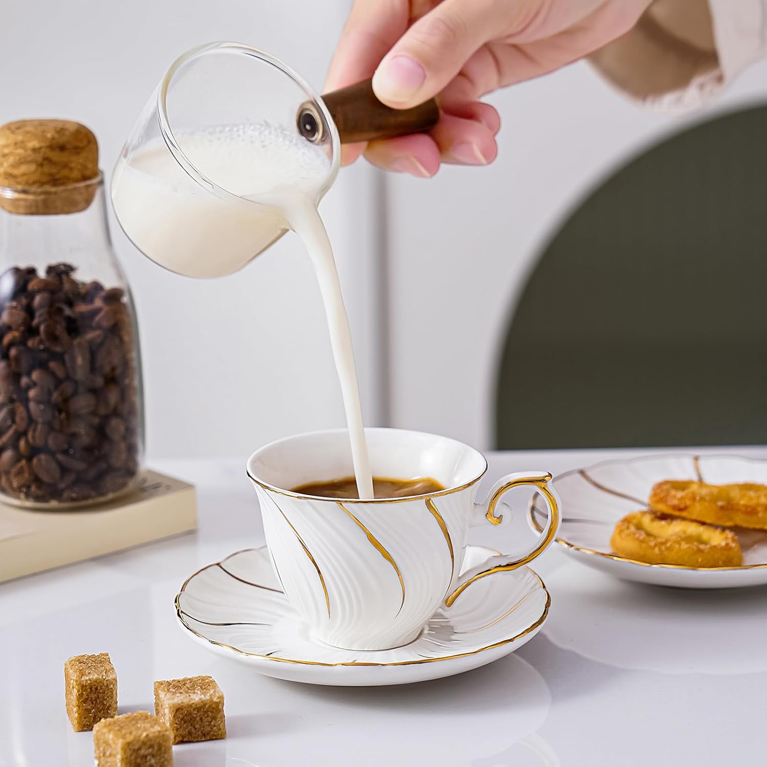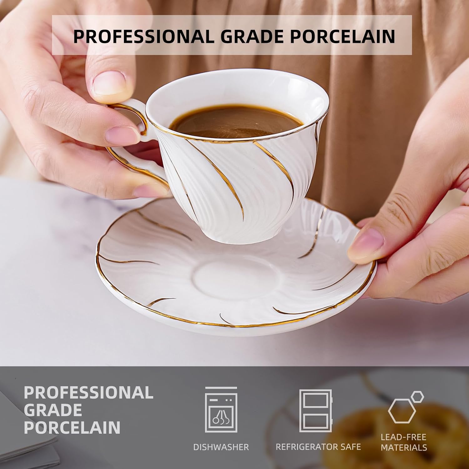 - Delicate small cups and saucers:Experience European sophistication with this intentionally petite cup (approx. 2.09in/5.3cm tall, 2.8in/7.1cm Diameter). Designed as a traditional demitasse, its 2.4oz capacity is perfect for savoring rich espresso, potent Turkish coffee, or delicate tea infusions in concentrated perfection.NOTE: Cup and saucer is a small cup and saucer, please check measurements.