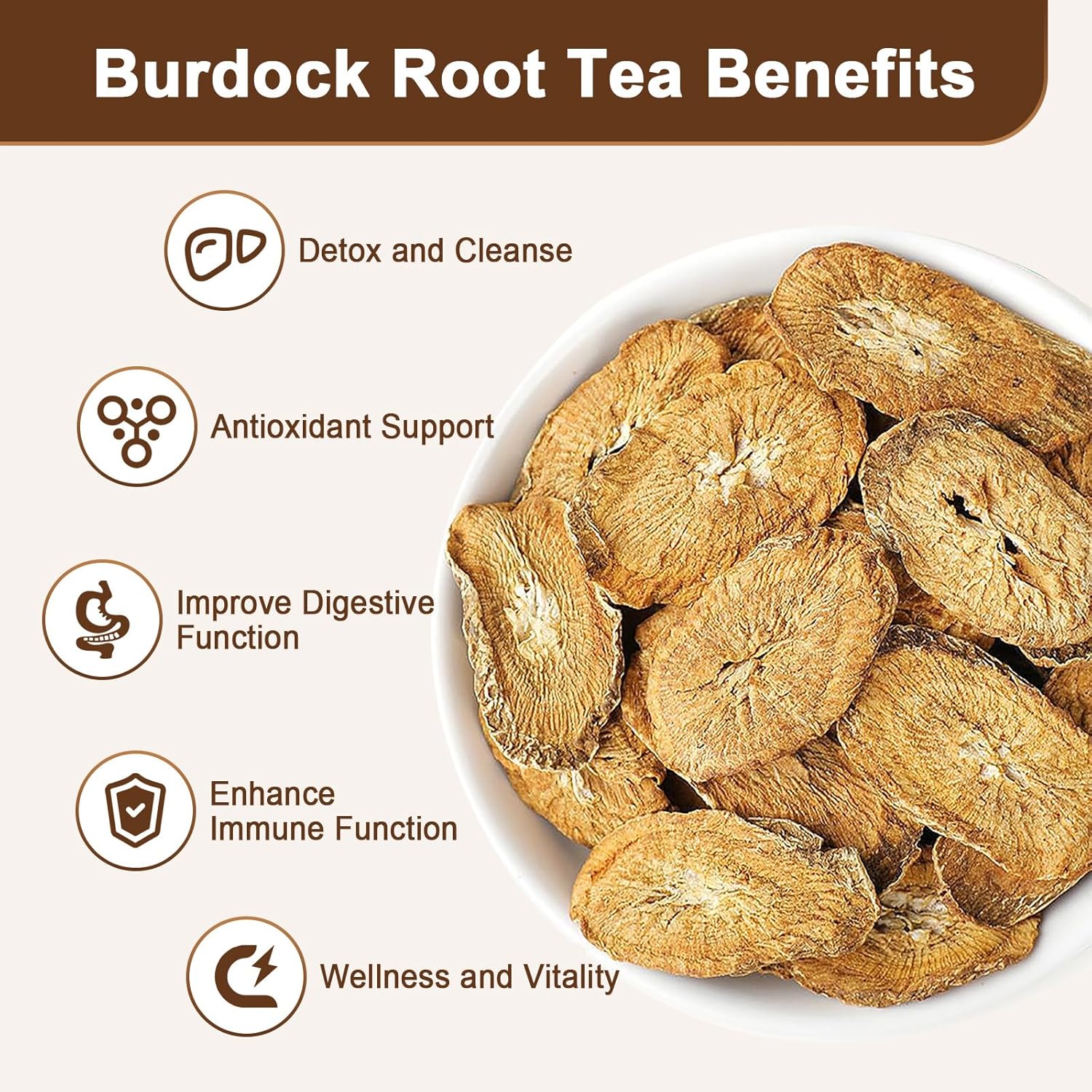 - HIGH QUALITY: We only harvest from wild Burdock Root plants and promise that this is a natural herbal tea without any fillers or additives. Free from string and glue, each teabag is also made of food-grade materials, natural ingredients to bring you a wonderful Burdock Root herbal flavor. This remarkable flavor may surprise and delight your senses. Delicious warm or cold.
