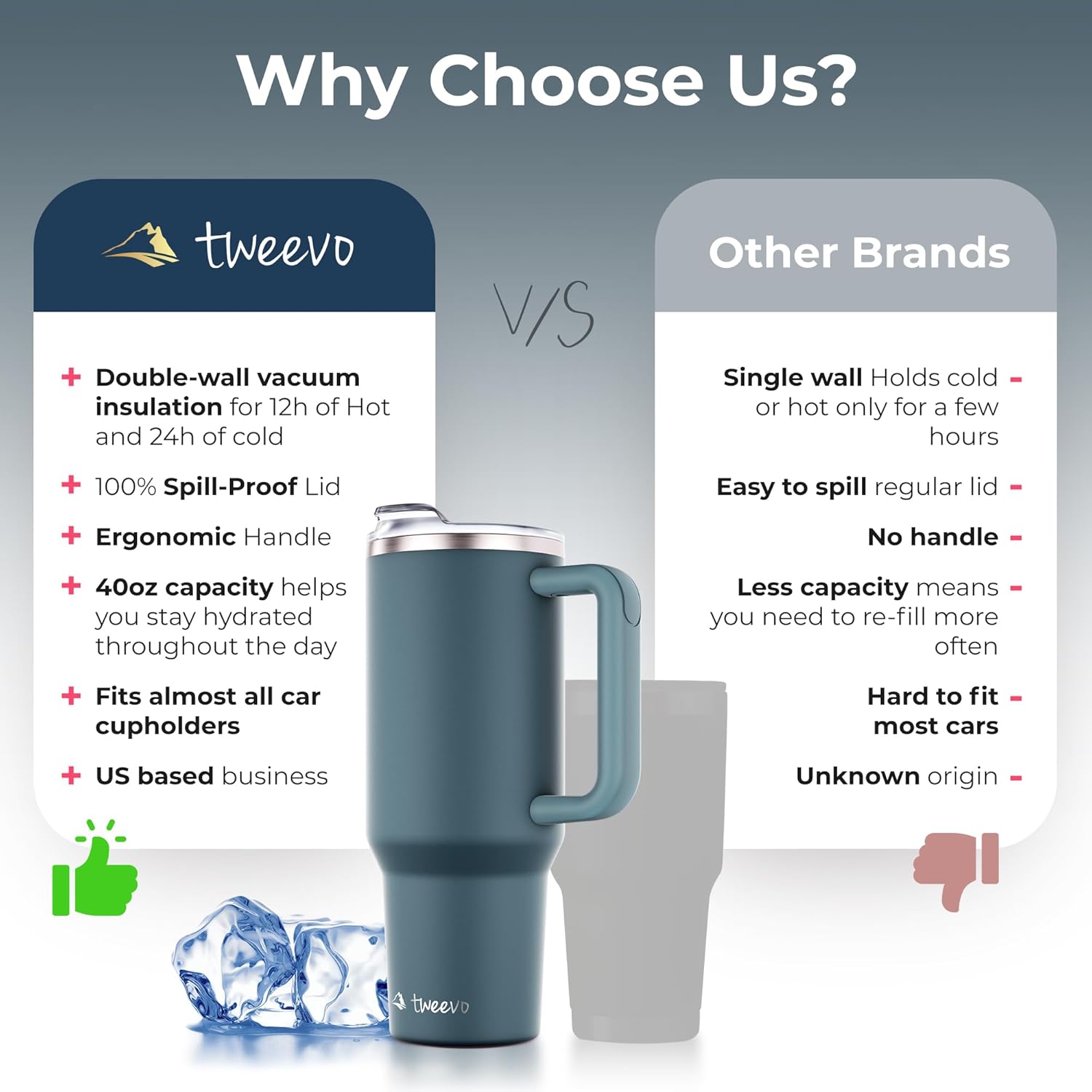 - Premium Stainless Steel Construction: Crafted from 18/8 food grade stainless steel, this 40 oz tumbler with handle and straw ensures safety and durability. The double-wall vacuum insulation retains the temperature of your drinks for extended periods, keeping them cold or hot as desired.