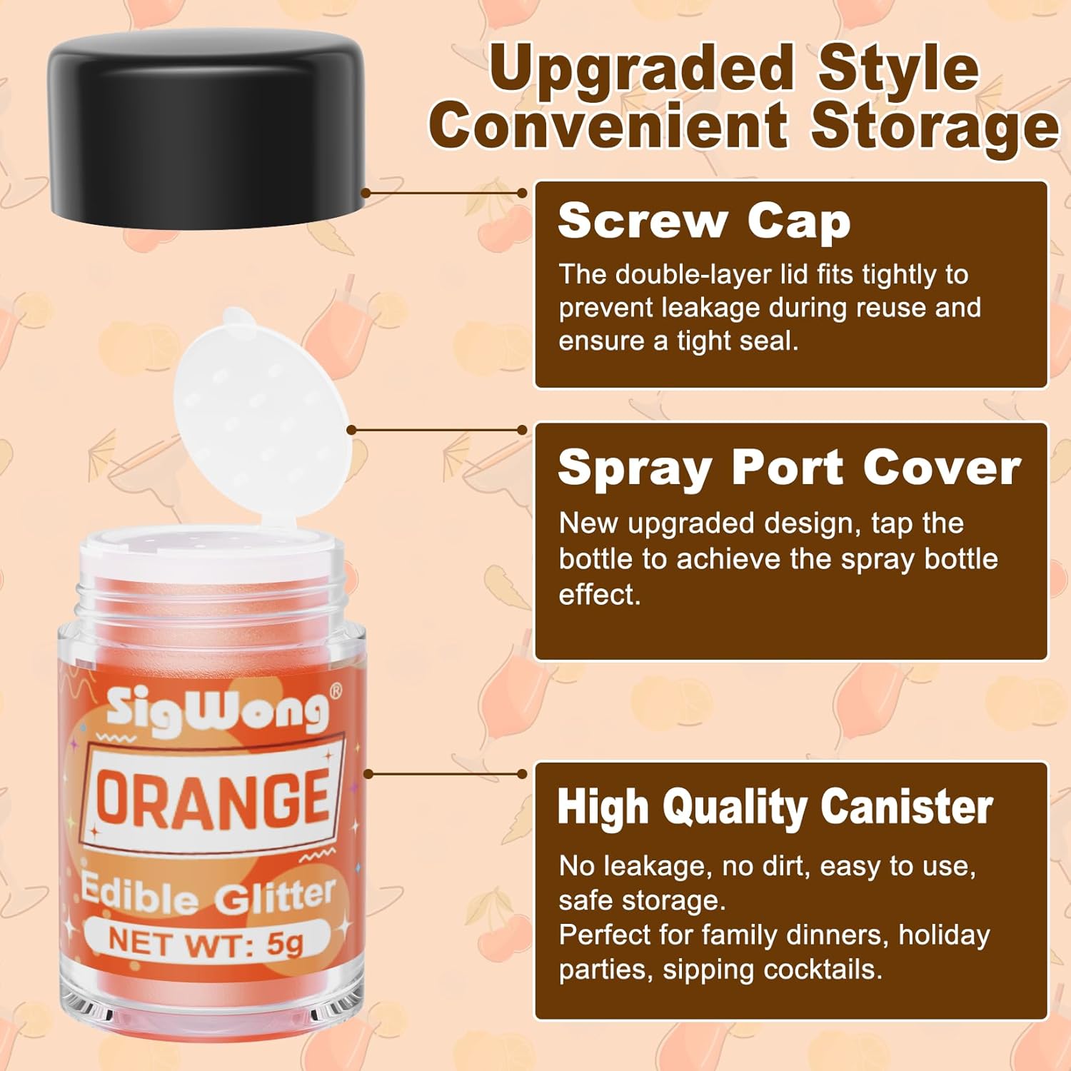 - VIVID 15 COLORS EDIBLE GLITTER: Our prism powder edible glitter is not limited to one color, we have Black, Rose Gold, Glitter Gold, Navy Blue, White, Light Violet, Green, Pink, Purple, Light Green, Sky Blue, Red, Yellow, Silver, Orange. Obviously, our edible glitter can meet more of your needs at once.
