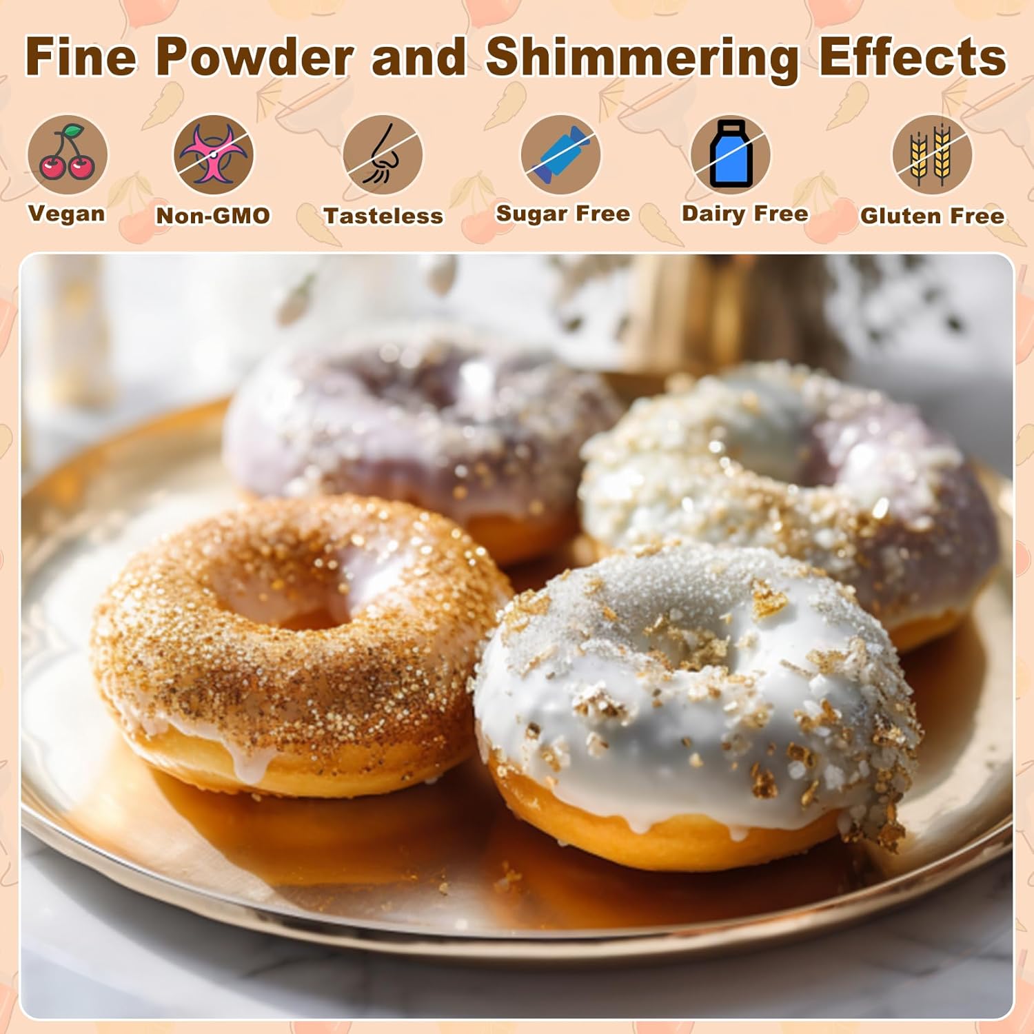 - HEALTHY FOOD DECORATION - Our edible glitter is made from food-grade ingredients that is vegan-friendly, gluten-free, dairy-free, non-GMO, it will not alter the original taste or texture of beverages and foods. Just as a perfect decoration to add to your creation which make it more charming.