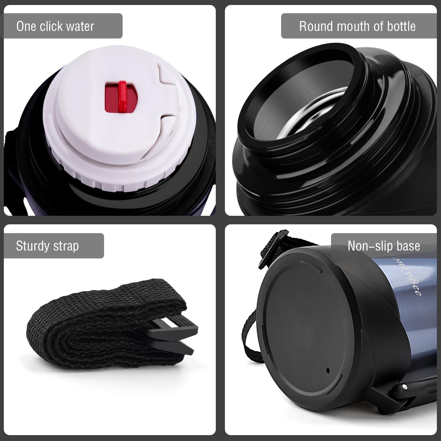 - Double-Wall Vacuum Insulation: The double-wall vacuum insulation technology prevents condensation from forming on the exterior of the bottle, keeping your drinks fresh and hygienic.