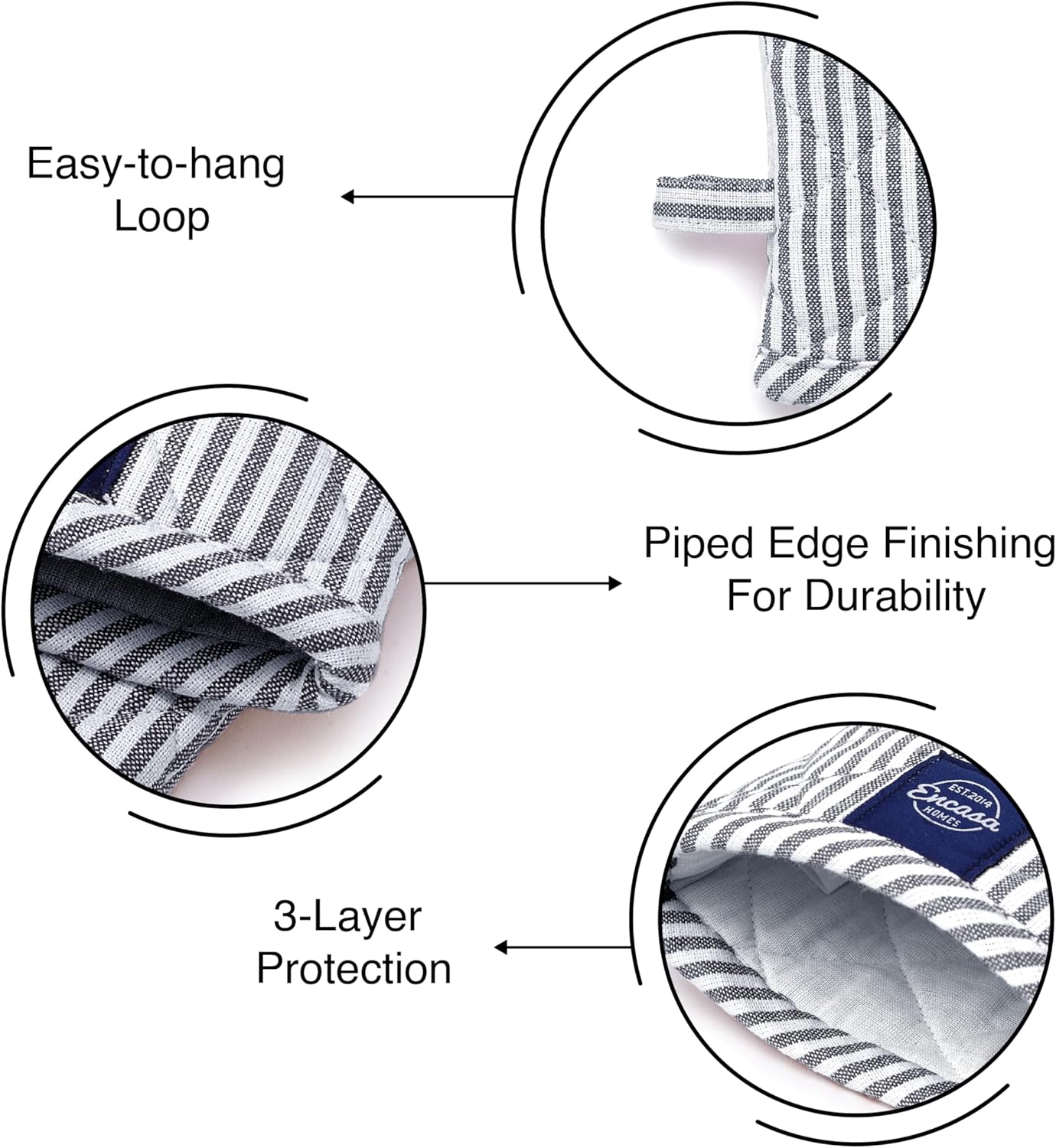 - QUALITY: Tolerates high cooking temperatures upto 220*C / 450*F. Usable for holding hot utensils dishes pots & pans, in ovens and microwaves, for barbeque & grills. Washable in cold water and soap to keep it clean and use for a longer period.