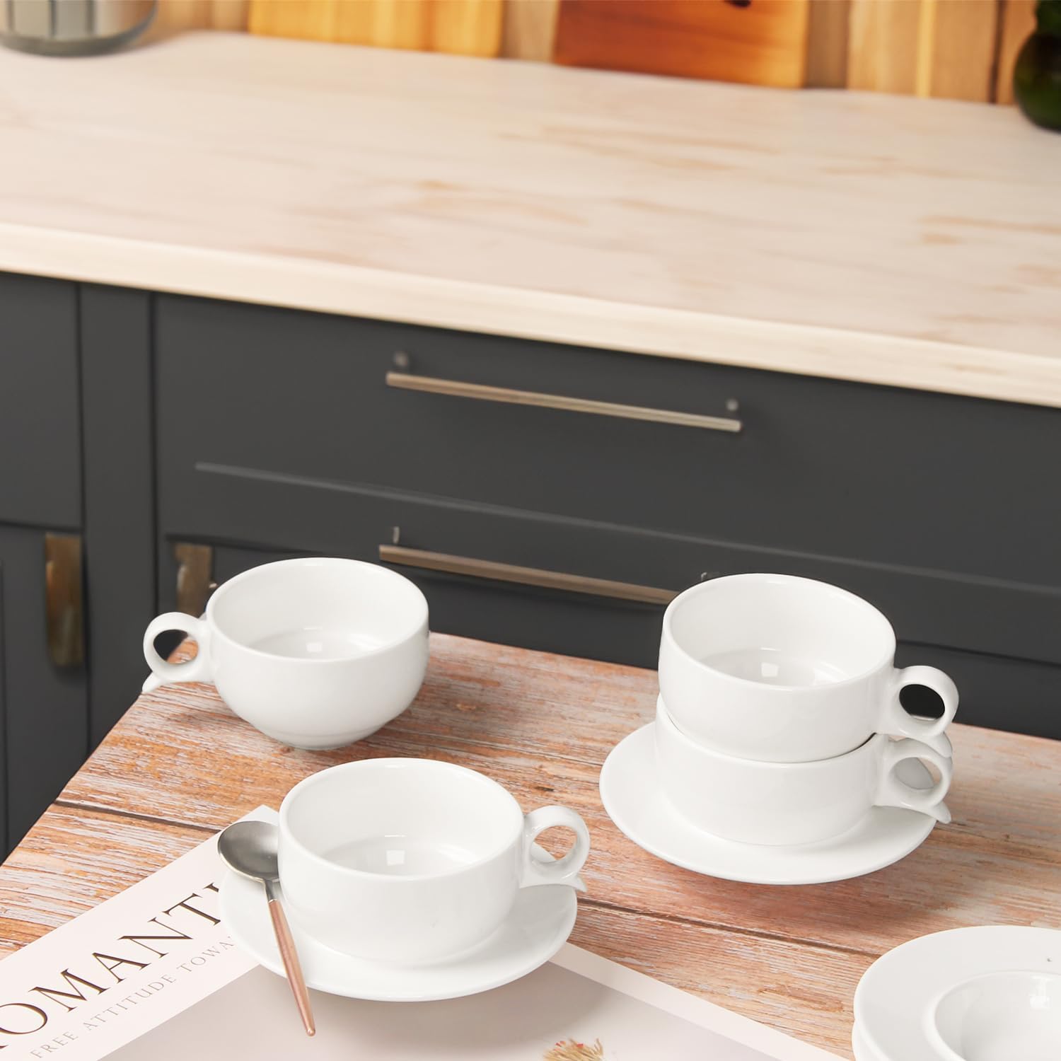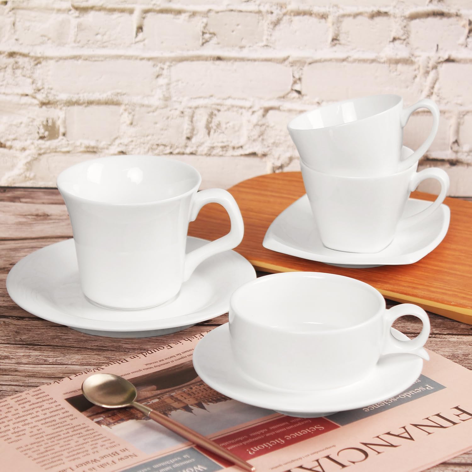 Italian Style Porcelain Espresso Cup Set - 4 Demi Tasse Cups, 4 oz Each