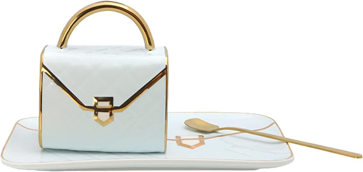 YnsfreeCeramic Purse Coffee Mugs Set Tea Cup Unique Bag shaped mug and Saucer Set with Spoon and Saucer For Women Thanksgiving Christmas Gifts (Blue)