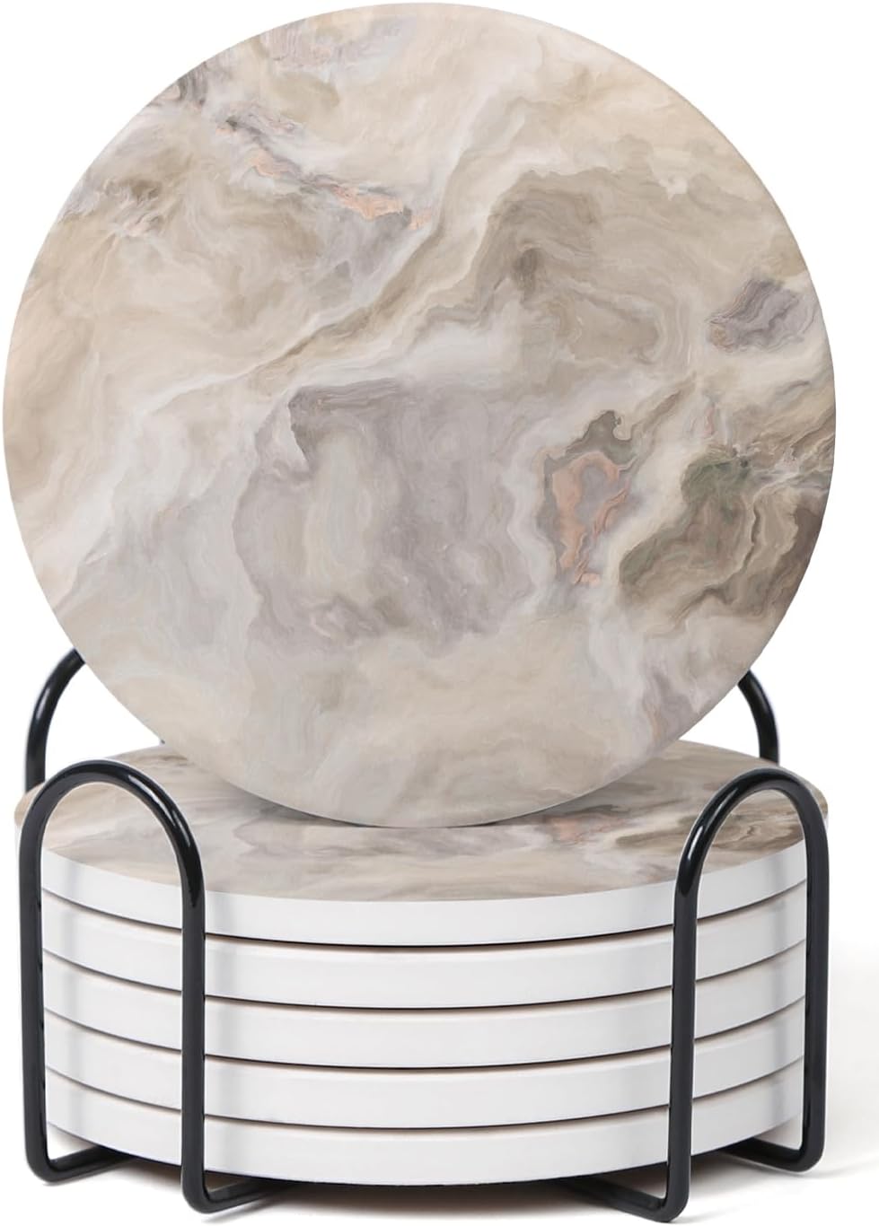 Set of 6 Abstract Marble Coasters with Holder, Absorbent Ceramic Coasters for Drinks, Coasters with Cork Backing for Table Protection, Housewarming Gifts for New Home