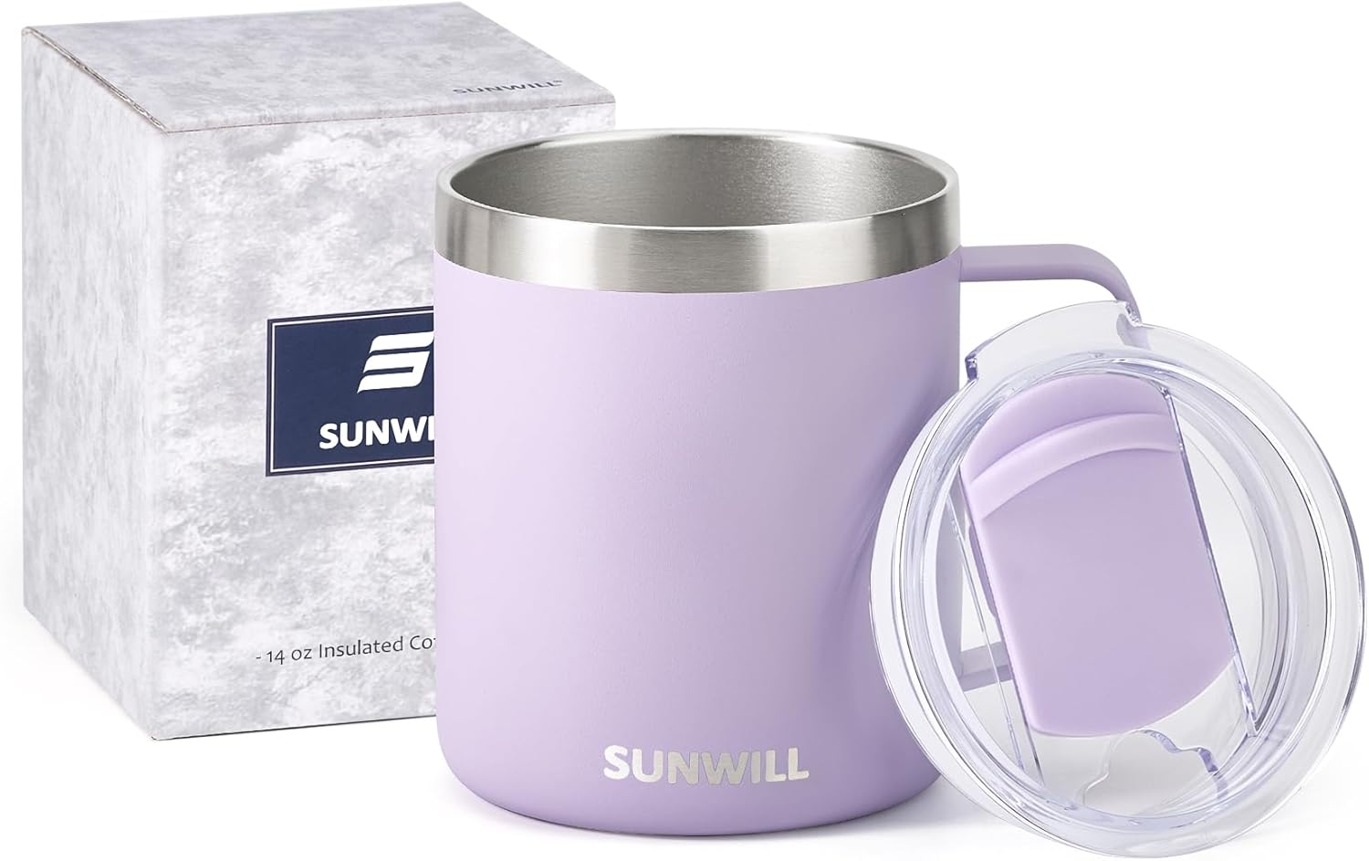 SUNWILL Travel Coffee Mug with Lid, Insulated Tumbler with Handle, 14 oz Stainless Steel Cup for Home, Office, Camping, Powder Coated Orchid