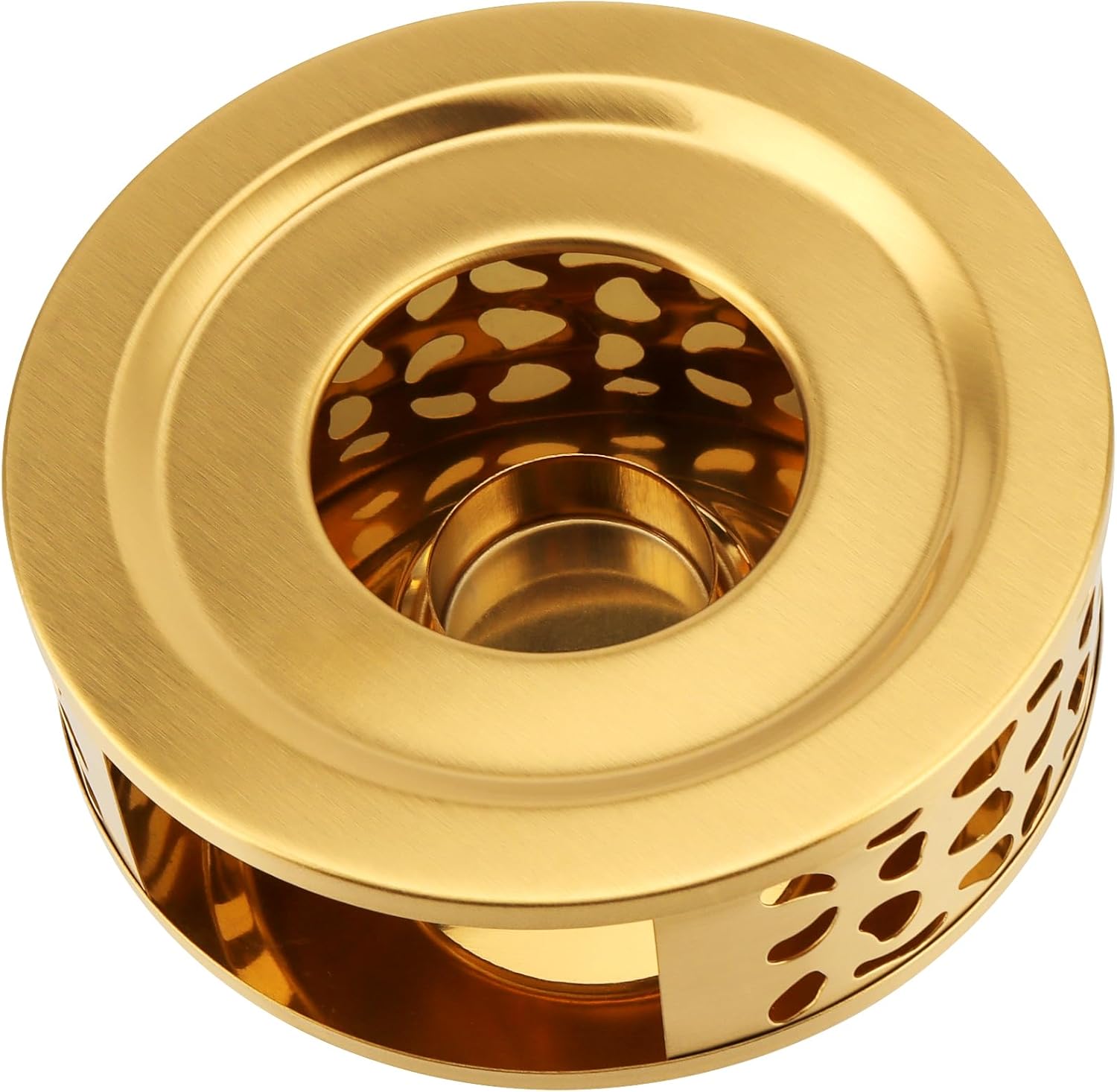 2 PCS Metal Teapot Warmer, Teapot Warmer Base, Stainless Steel Teapot Warmer with Tealight Holder for Glass Or Ceramic Teapot, Gold