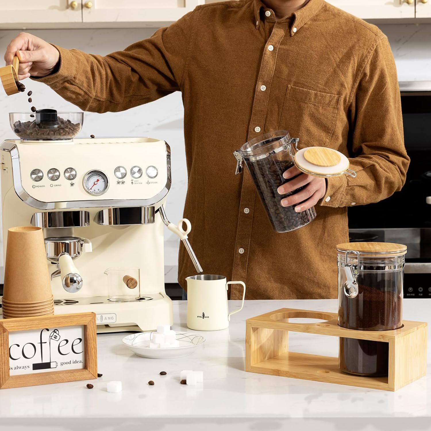 - 2 PCS COFFEE CANISTERS: 2 x 38 oz food canisters can store more food at one time, such as coffee beans, various nuts, pasta, flour, etc.