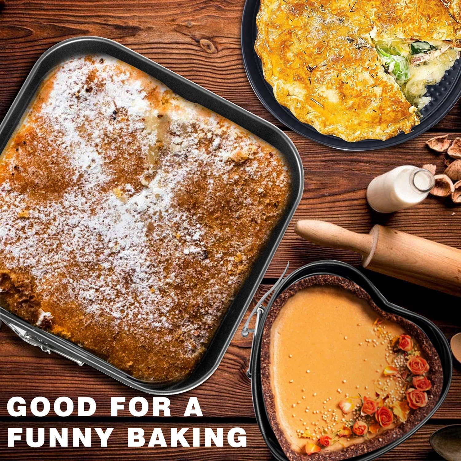 Springform Cake Pan Set of 3 (7, 8, 9 Inch) Heart Round Square Baking Pans Nonstick Cheesecake Pans with Removable Bottom Stainless Steel Bakeware for Cake, Mousse
