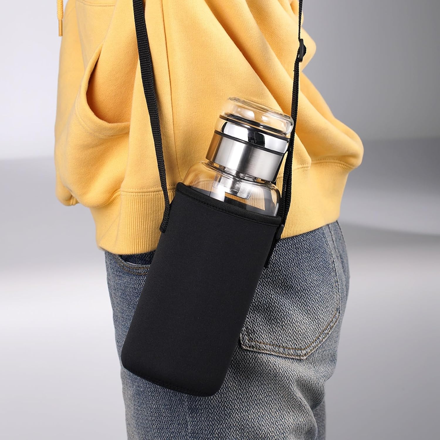 - 4. Carry with Confidence: Our glass water bottle comes with a durable and comfortable strap, making it easy to carry wherever your adventures take you. Plus, it comes with a protective sleeve for that extra peace of mind. Adventure awaits, and your water bottle is ready!
