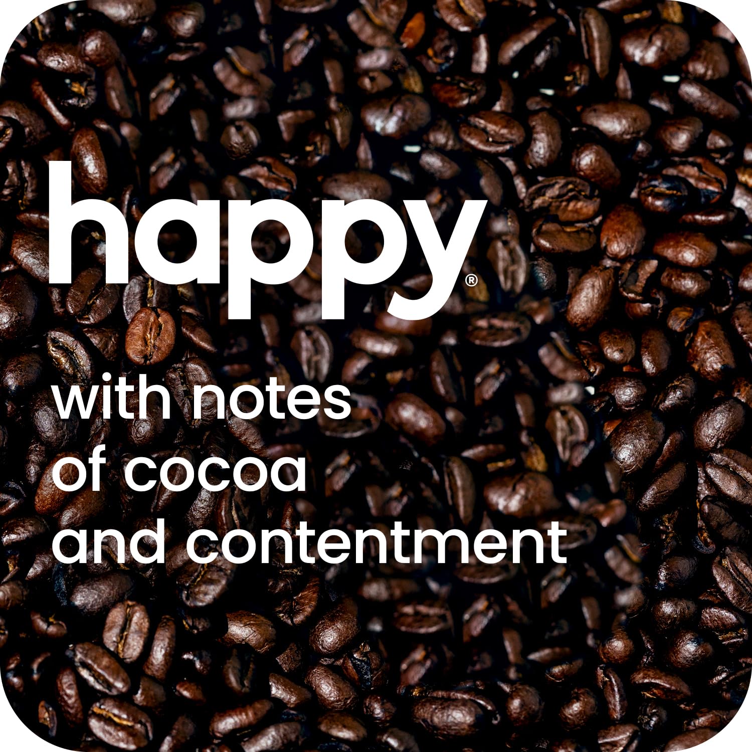 - seriously delicious: start your morning off right with happy’s astonishing dark roast coffee pods, thoughtfully sourced and expertly blended with notes of cocoa and contentment.