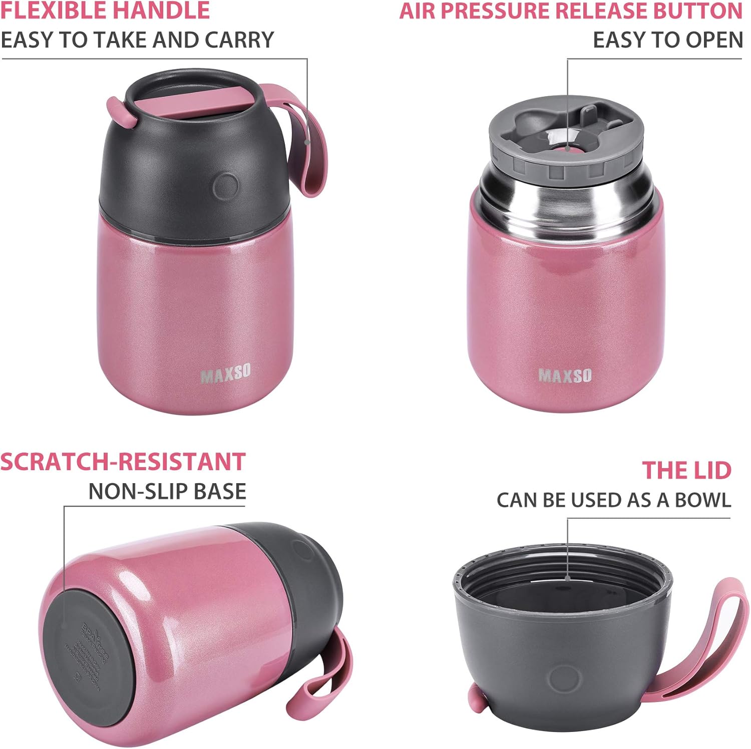 - 【Superior Vacuum Insulation】Keeping your soup hot, it can be an easy thing!!! Durable insulated thermal technology maintains temperatures for longer, interior is constructed entirely of food-grade stainless steel, keeping food hot up to 12 hours or cold for 24. Whether in school or in the office, you can always enjoy hot food and soup during lunch time! It is suitable for babies, toddlers, children, girls, boys, adults and the elderly, perfect for school, office, travel, camping, gym, home.