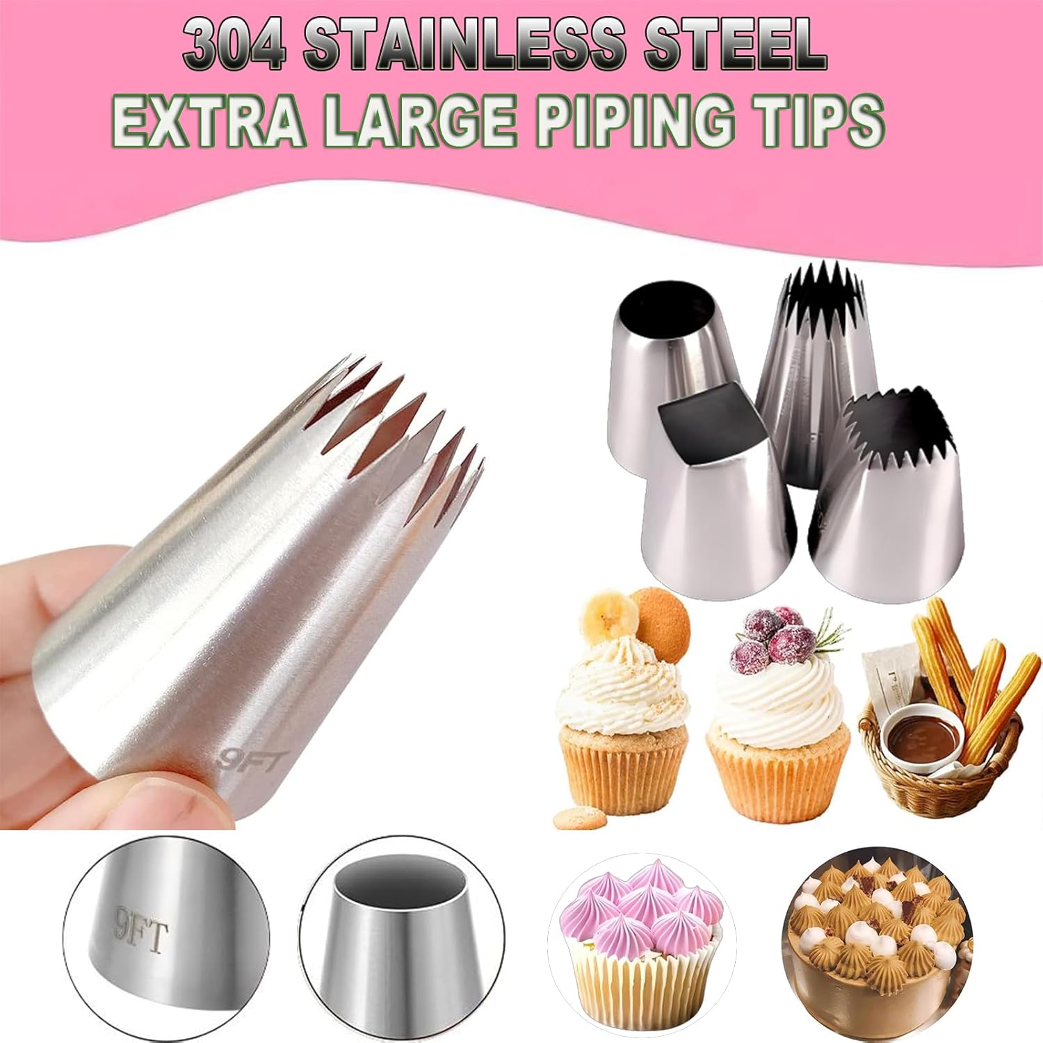 - 【PREMIUM QUALITY MATERIAL 】 We manufacture our extra large piping tips from stainless steel, a durable alloy that is and very resistant to corrosion,Made of high quality food grade stainless steel. Strong and durable, will not rust. Large Piping Nozzles is bigger than other, more convenient to use. easy to clean and dishwasher safe.