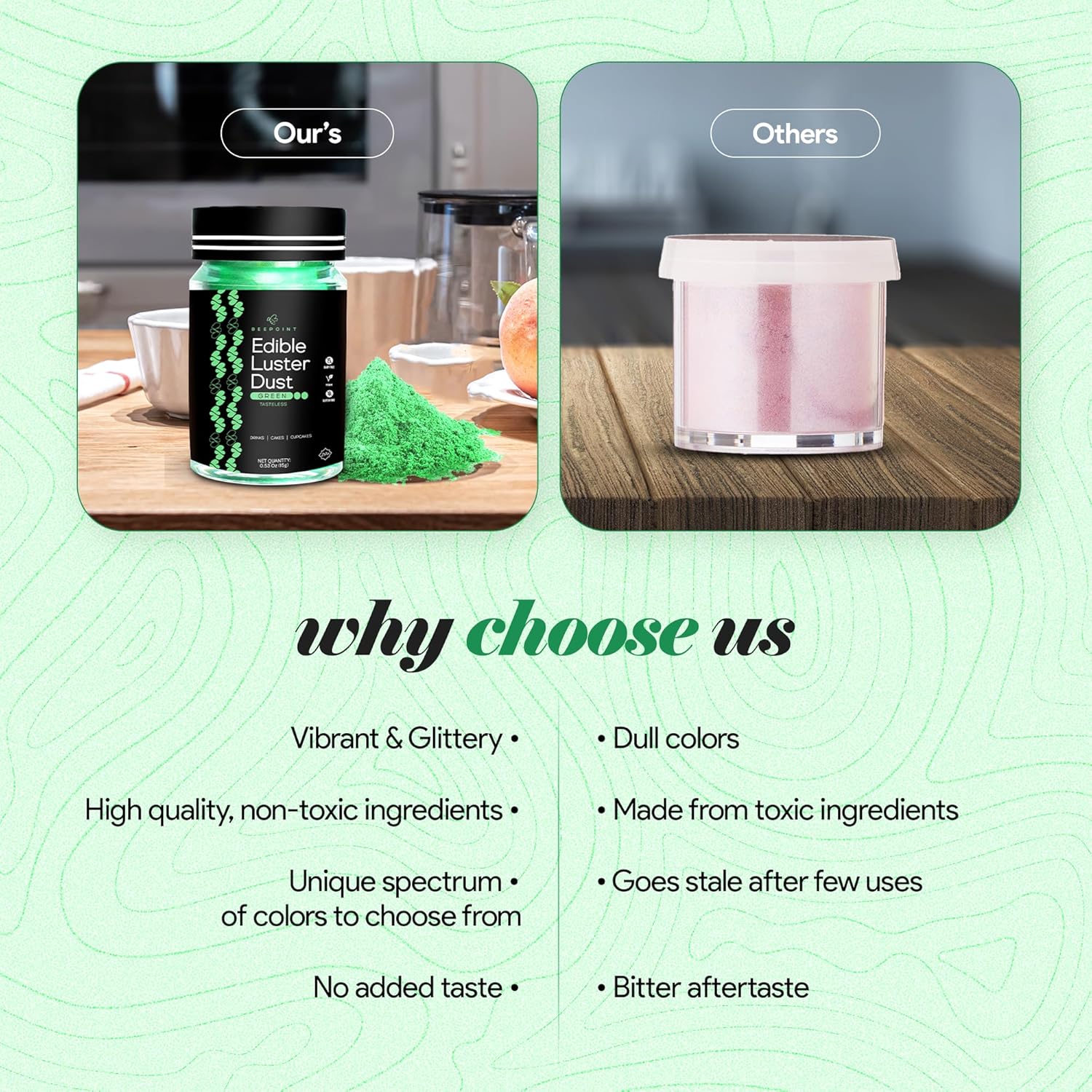 - Effortless Sparkle: Achieve vibrant metallic food glitter edible dust on cakes, desserts, and drinks with our easy-to-use luster powder dust, perfect for both beginners and professionals