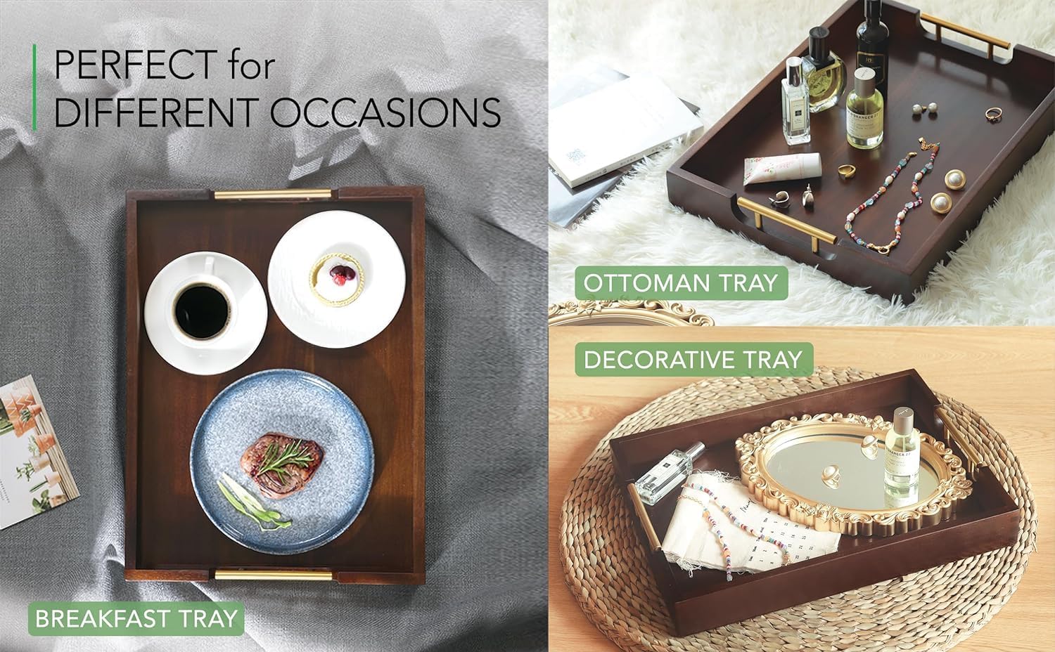 - Versatile Tray for Every Need: From home decor and organizing various spaces in your living room, bedroom, or kitchen, to serving as a coffee table, food, dinner, or ottoman tray, even for surprising a loved one with breakfast in bed