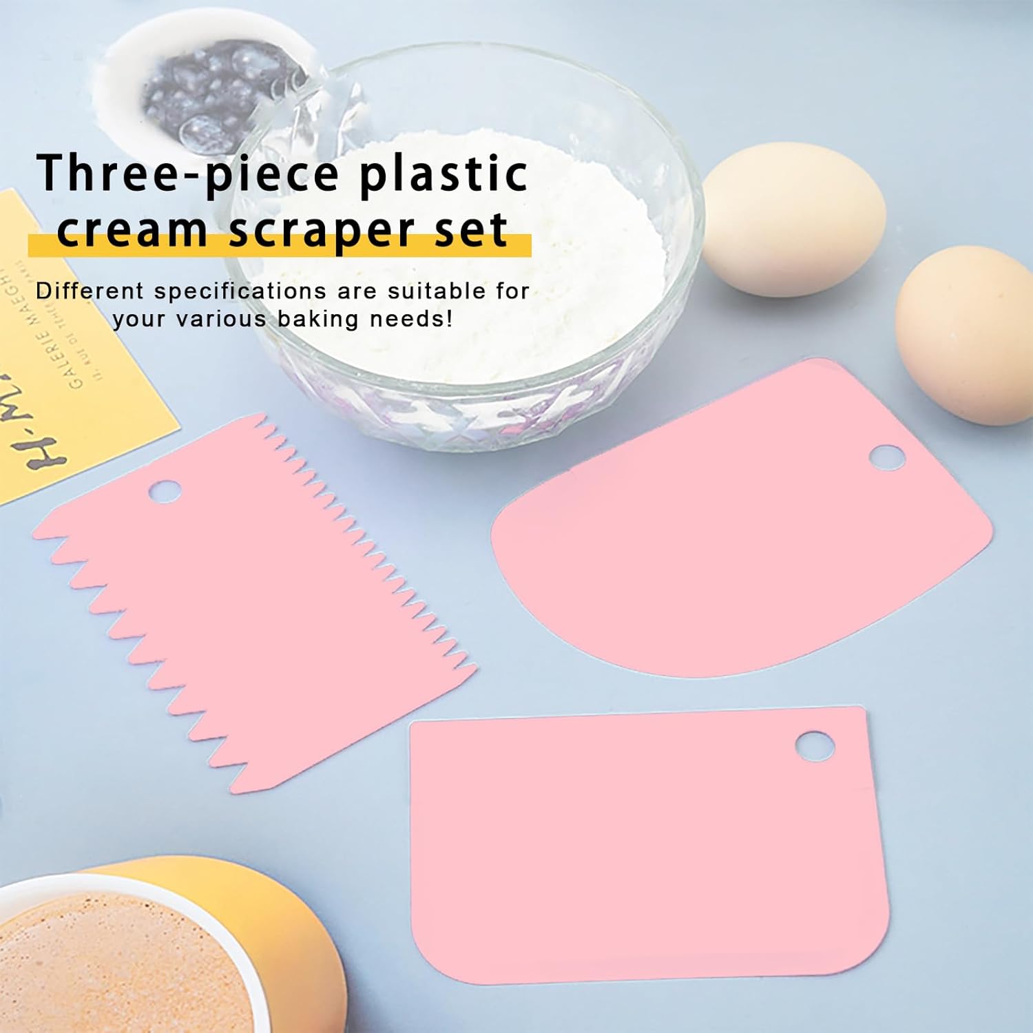 - Cake scrapers: Made of food grade plastic, reusable, non-toxic and durable. There are 3 icing scrapers for you to decorate cakes. We provide one with teeth design so it is great to make wavy or straight line designs on icing. Make you cakes unique!