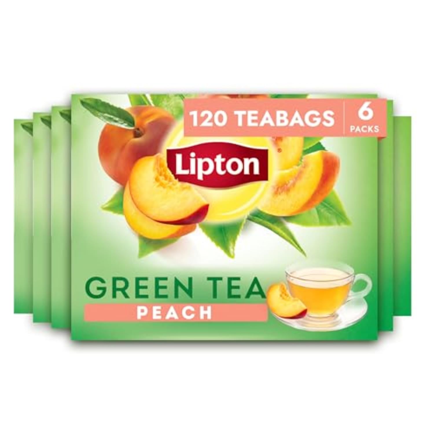 Lipton Peach Green Tea Bags, Flavored, Unsweetened Teabags for Hot Tea or Peach Iced Tea with Caffeine and Flavonoids, 120 Total Tea Bags (20ct - Pack of 6)