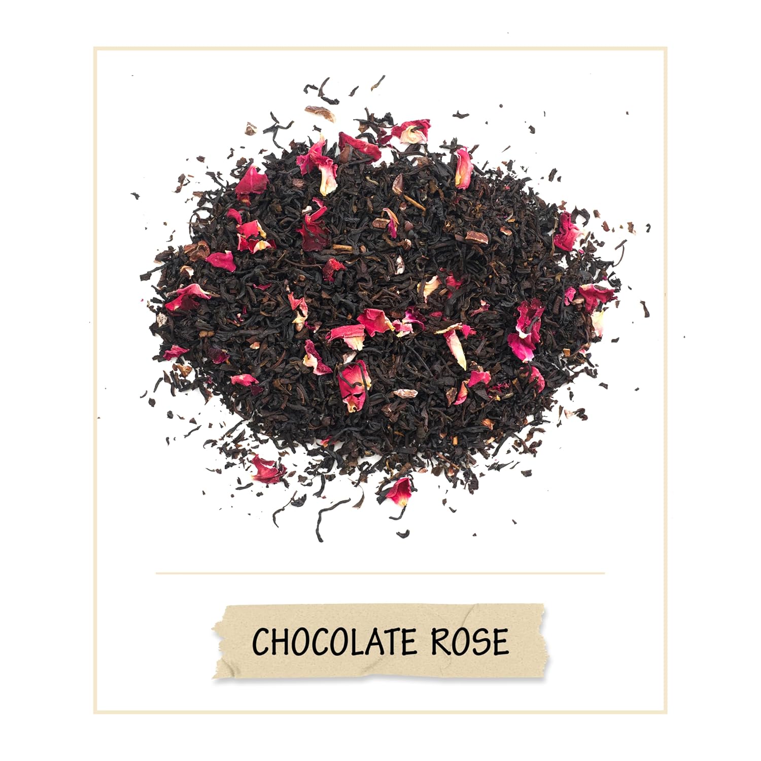 - CHOCOLATE ROSE BLACK TEA: Indulge in the exquisite blend of Chocolate Rose Black Tea, marrying rich cocoa notes with delicate floral hints for a decadent and aromatic experience. Savor the perfect harmony of premium black tea leaves infused with luscious chocolate and sweet rose petals in every comforting sip.