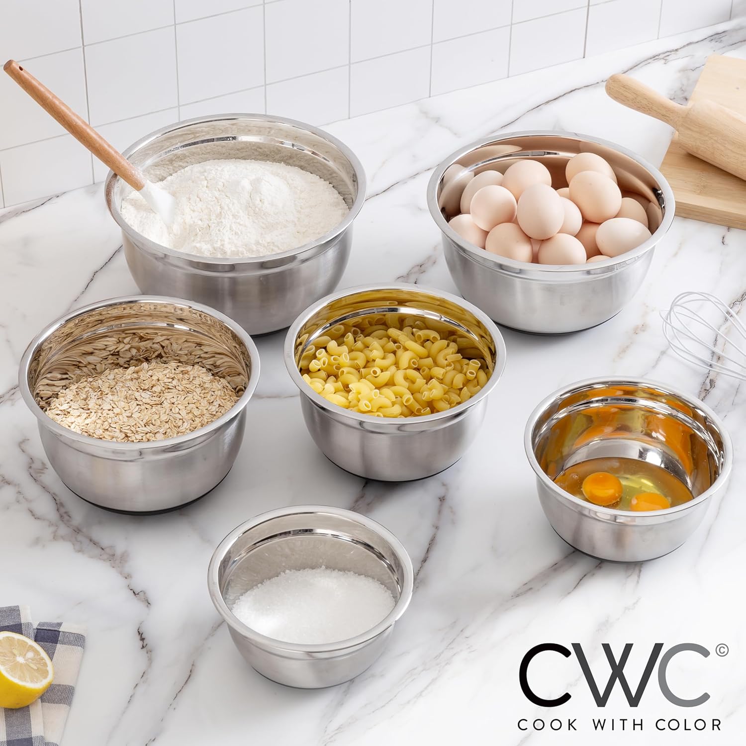 - Wide Rim - For a mess free cooking session, choose our bowls with a wide rim and lip. These features allow messy ingredients like flour, sugar and oil to be added directly into the bowl easily.