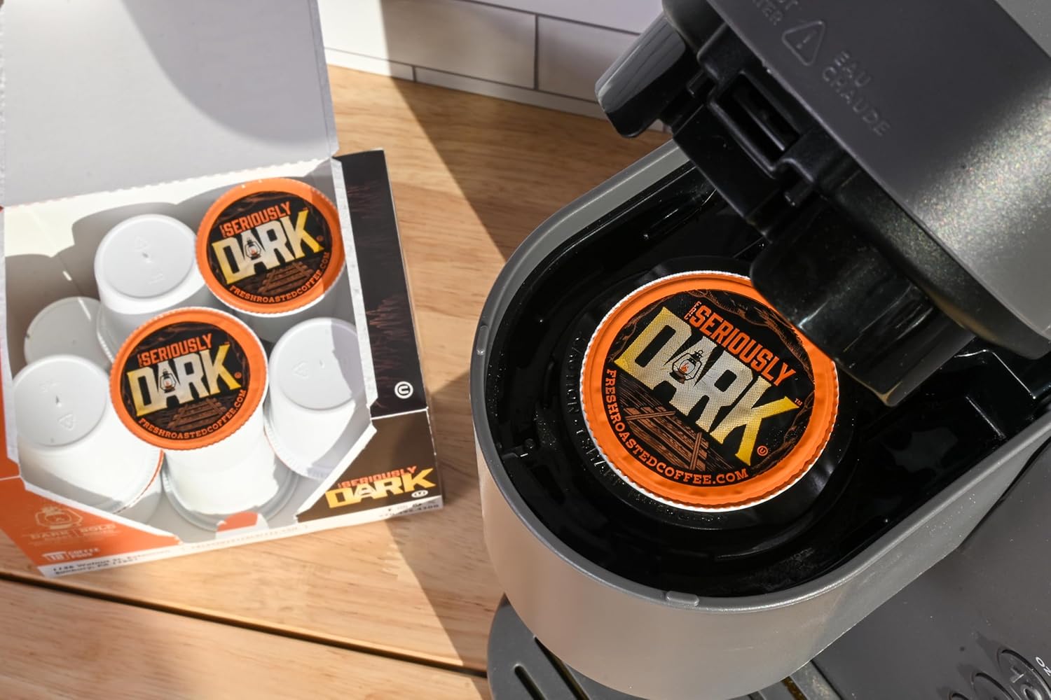 Fresh Roasted Coffee, Seriously Dark, Artisan Blend, Dark Roast, 72 Pods for K Cup Brewers
