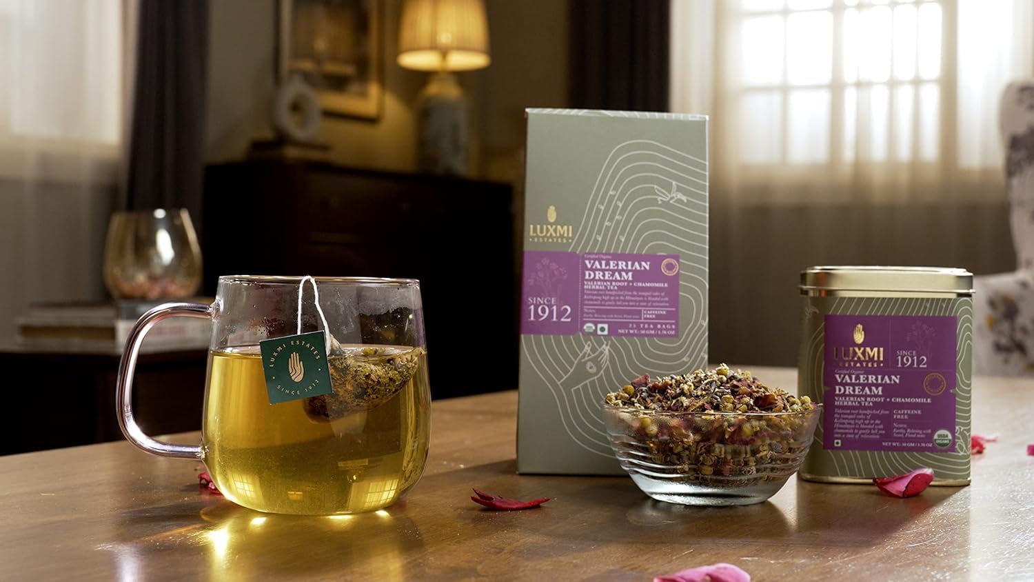 - CONTAINS: Luxmi Estates Valerian Dream Tea, 90 tea bags, certified organic valerian root tea for sleep, relaxing, calming down, and stress relief..