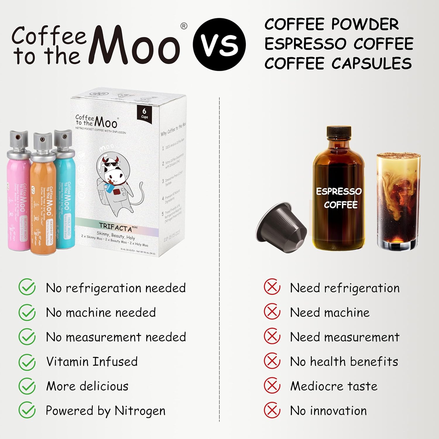 - 📦 The Complete Coffee Concentrate Pack - Trifacta Mini Pack offers 2x Skinny Moo, 2x Beauty Moo, and 2x Holy Moo blends, catering to various lifestyles and wellness goals like boosting brain function, or improving your hair, skin, and nails.