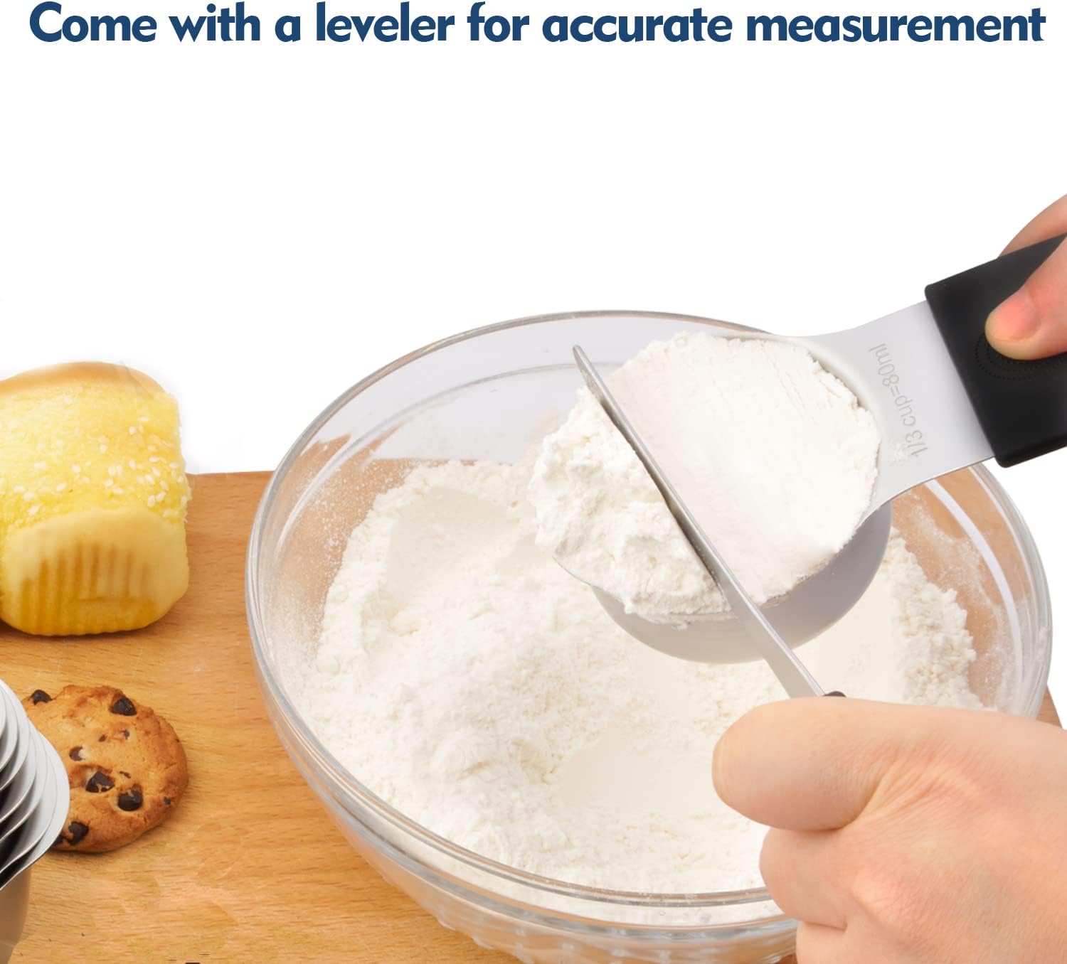- Set of 14 with Engraved Measurement - We change it to easy-reading engraved measurement. You will get 1/8 cup, 1/4 cup, 1/3 cup, 1/2 cup, 2/3 cup, 3/4 cup, 1 cup & 1/8tsp, 1/4tsp, 1/2tsp, 3/4tsp, 1tsp, 1tbsp, 1leveler.