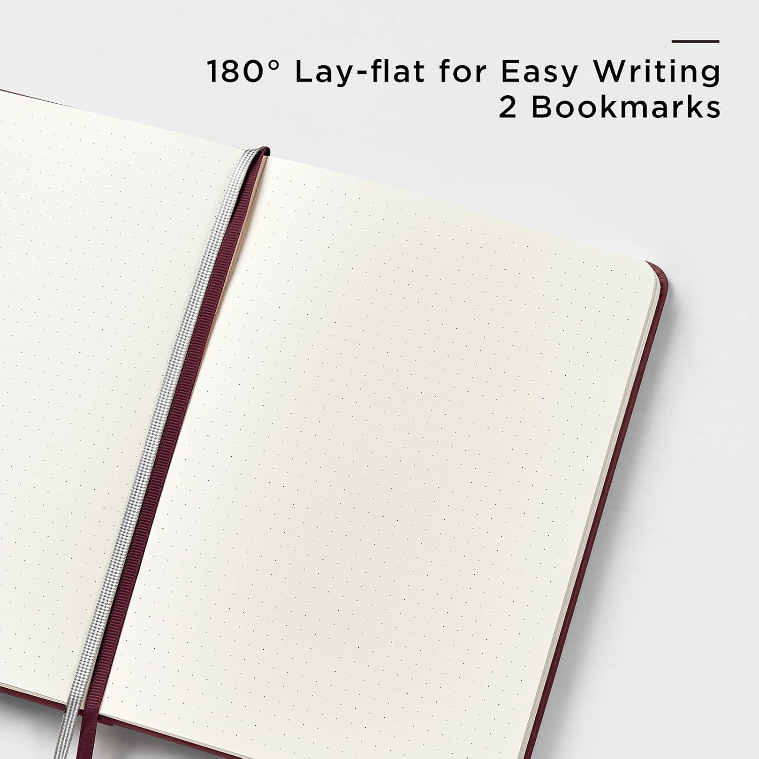 - 180° LAY-FLAT DESIGN: The lay-flat design allows for easy writing and ensures that you can utilize every page efficiently. Journaling, note-taking and planning has never been easier! 2 Bookmarks to help you find important content faster