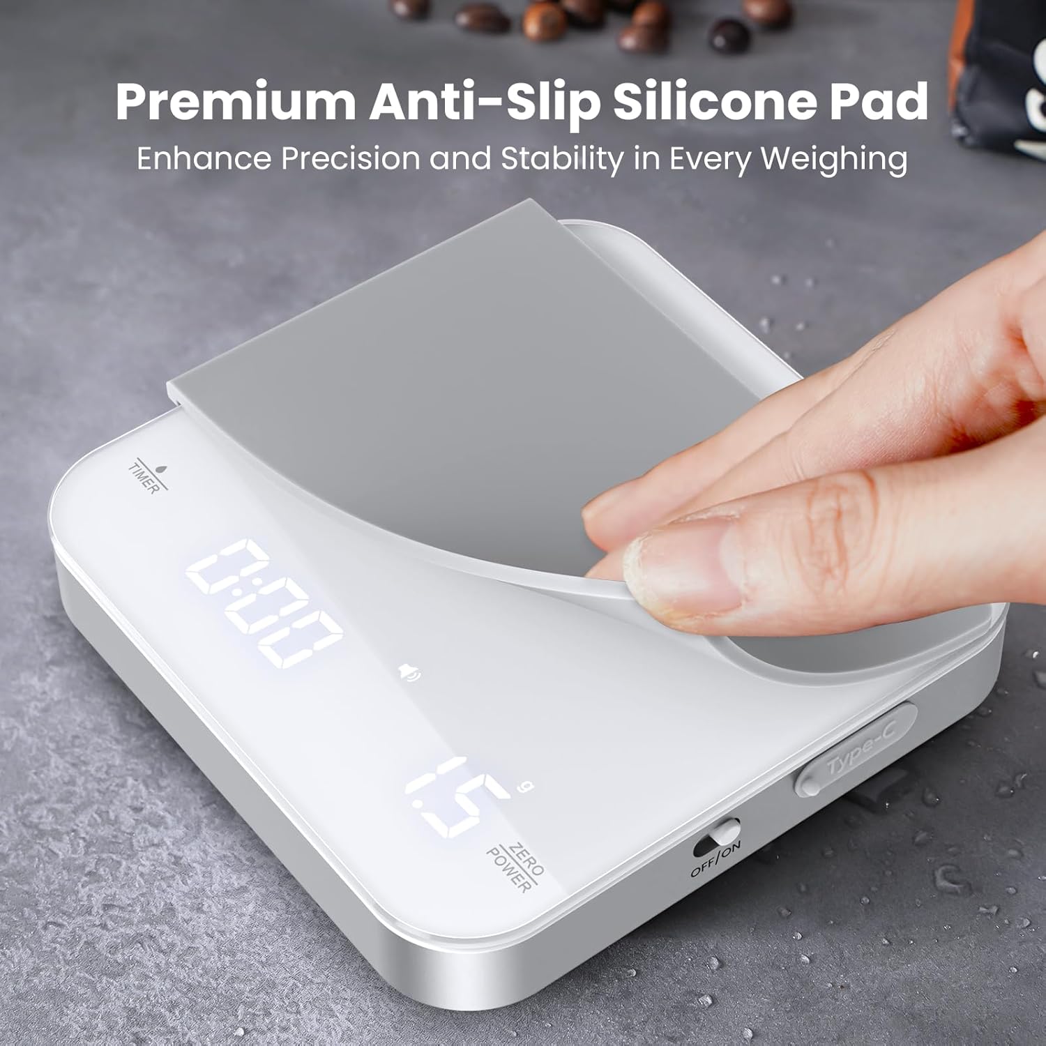 - 【Silent Brewing】Experience a tranquil coffee morning with our coffee scale's Mute Function. Press and hold the TIMER and ZERO buttons for approximately 2 seconds to deactivate the beeping sound, allowing you to enjoy a peaceful start to your day