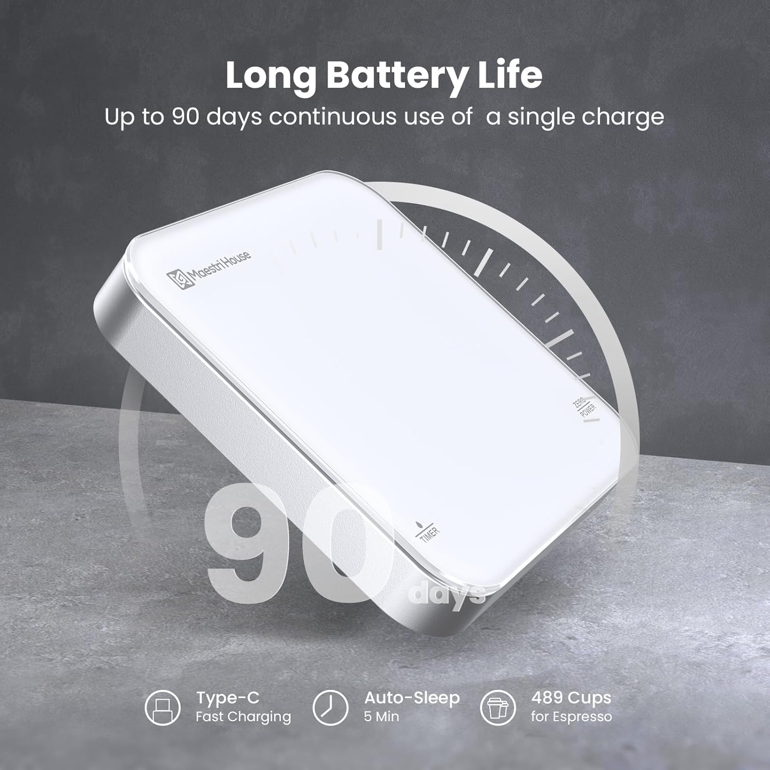 - 【Long Standby Rechargeable Battery 】The gram scale has a built-in 500 mAh lithium battery and a USB-C charging cable in the package. There is no need to replace or buy batteries; they can be used for up to 90 days on a single charge. The coffee scale will automatically enter sleep mode after 5 minutes of inactivity to save power