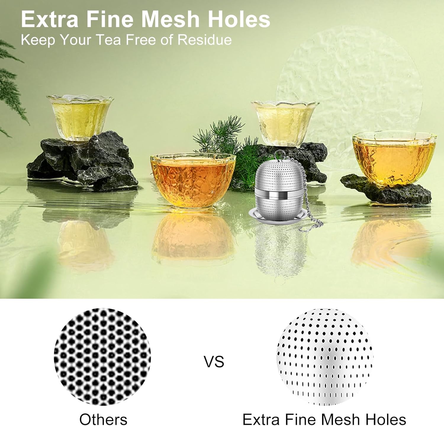 - Extra Fine Mesh: 0.5mm ultra-fine pores have strong filtration function, preventing the leakage of tea residue, and you can enjoy clean and pure tea. This tea maker can be used to boil various loose tea leaves, as well as to add spices and cook soup.