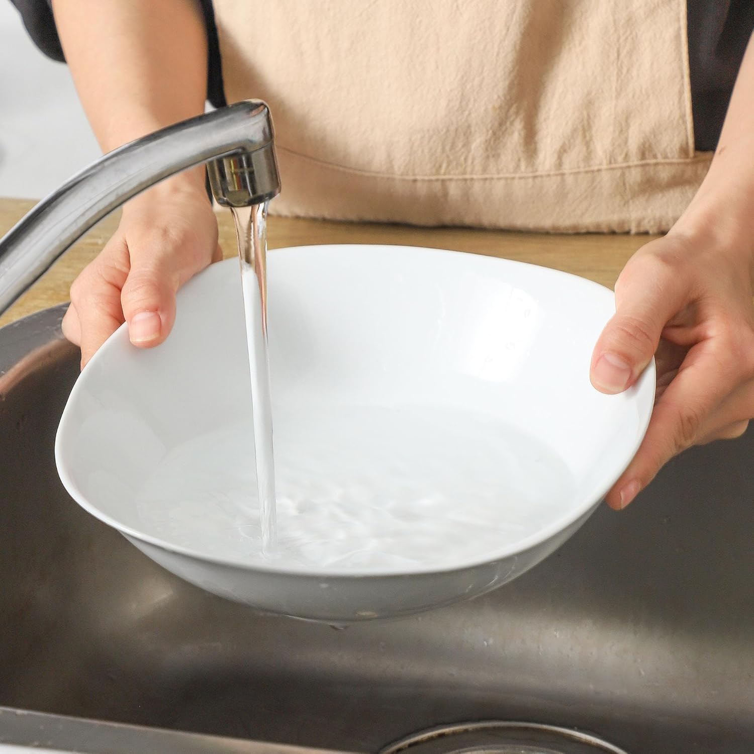 - Durable Porcelain & Modern White: These dinner plates made of durable porcelain, can withstand the wear and tear of everyday use. The solid white color allows you to use these bowls for fancy dinner for serving everyday stuff. Easy to showcase the food and there is no worry about staining